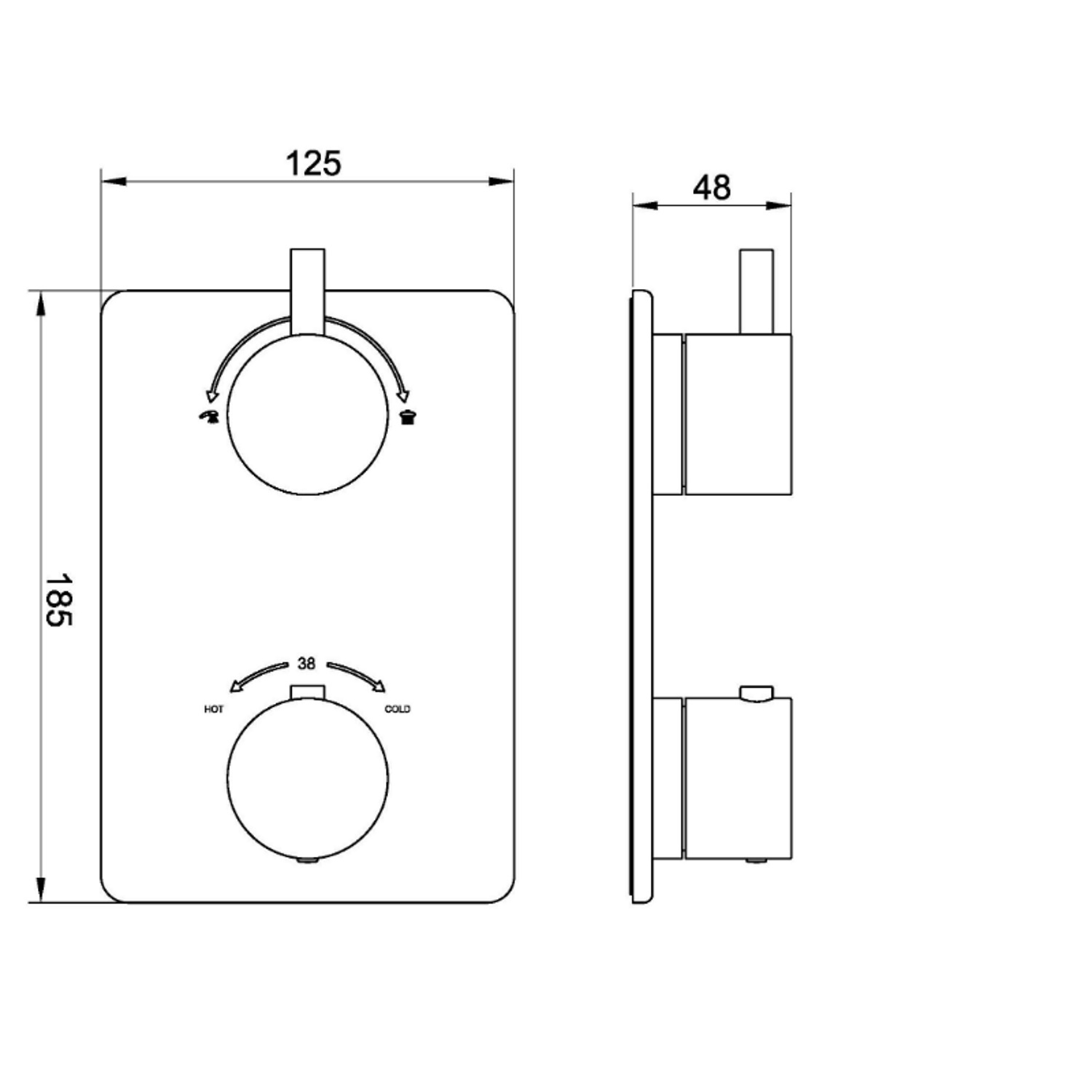 Uit de serie Karsten van BWS komt deze fraaie koperen afbouwdeel inbouwthermostaat. Deze thermostaat is voorzien van een afbouwdeel en een inbouwdeel. U kunt de thermostaat middels twee knoppen beienen. De onderste knop van de thermostaat heeft een begrenzing van 38 graden. Met de bovenste knop kunt zelf de handdouche of hoofddouche bedienen.