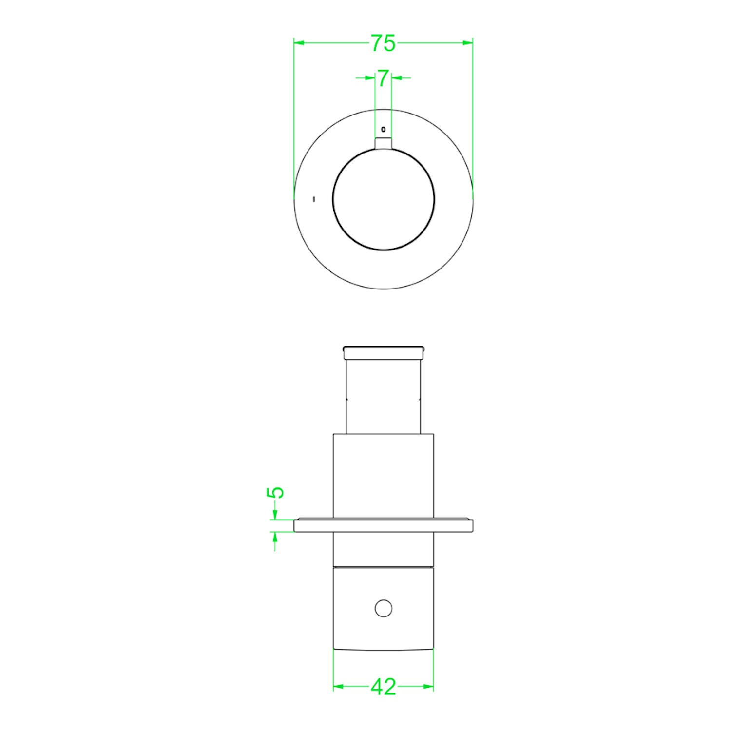 De breedte van het rozet is 7,5 cm en de breedte van de greep is 4,2 cm.