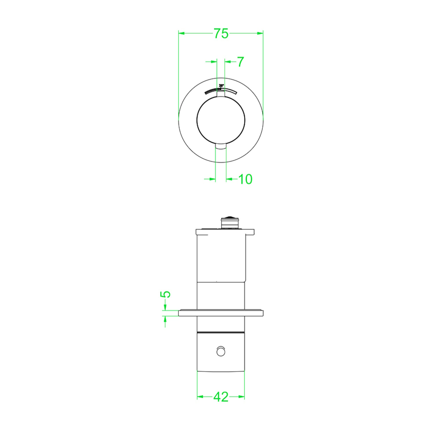 De breedte van het rozet is 7,5 cm en de breedte van de greep is 4,2 cm.