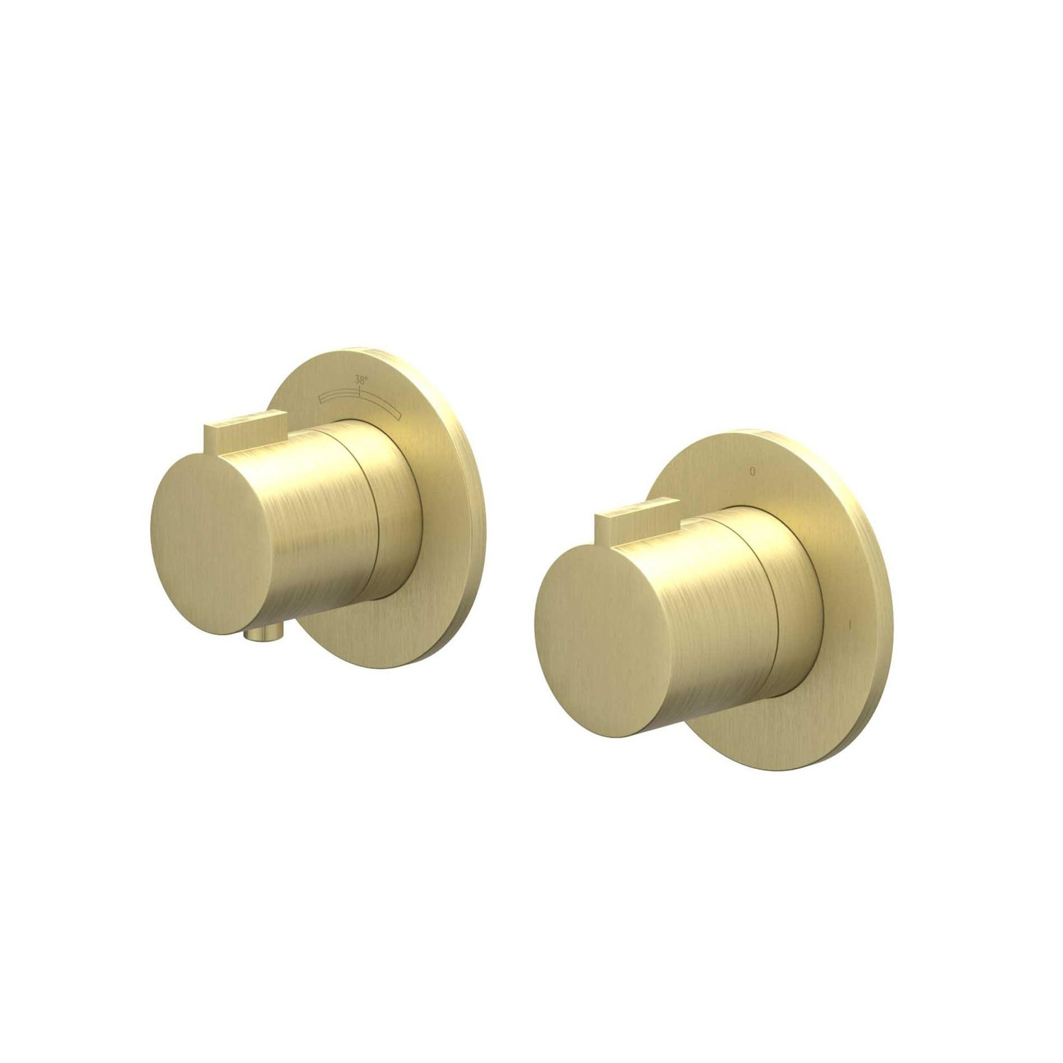 Dit afbouwdeel is van het merk IVY uit de serie Pact en is voor een inbouwthermostaat. Het afbouwdeel heeft een symmetrisch ontwerp met een ronde rozet, dit geeft een extra elegante touch aan het geheel. De gouden kleur met een geborstelde matte finish geeft een strakke uitstraling en past perfect bij verschillende badkamerstijlen. De PVD-coating zorgt ervoor dat het afbouwdeel resistenter is voor corrosie en krassen. De 2-weg stop-omstel functie biedt gemak in het regelen tussen verschillende wateruitgangen te schakelen.