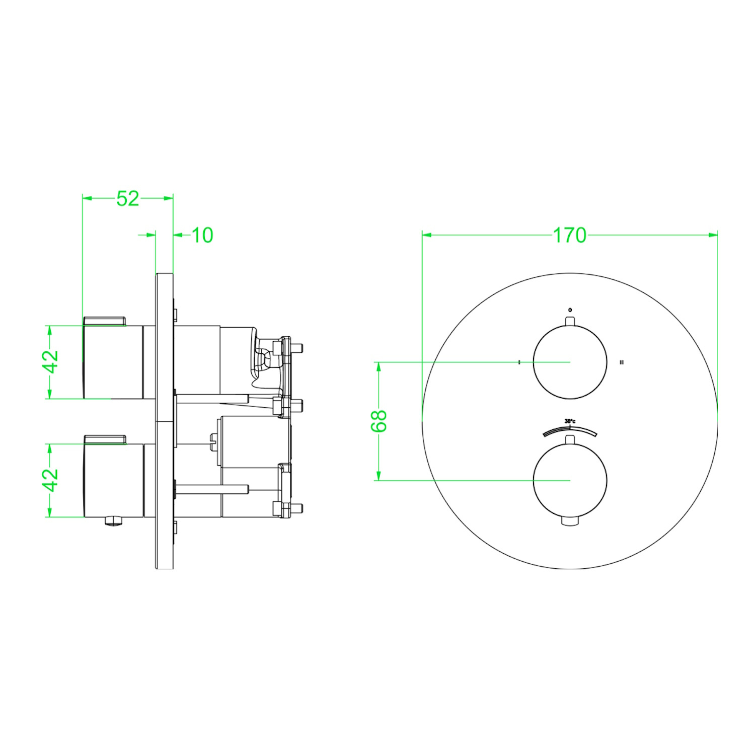 Dit afbouwdeel is van het merk IVY uit de serie Pact en is voor een inbouwthermostaat. Het afbouwdeel heeft een symmetrisch ontwerp met een ronde rozet, dit geeft een extra elegante touch aan het geheel. De zwarte kleur met een geborstelde metal finish geeft een strakke uitstraling en past perfect bij verschillende badkamerstijlen. De PVD-coating zorgt ervoor dat het afbouwdeel resistenter is voor corrosie en krassen. De 2-weg stop-omstel functie biedt gemak in het regelen tussen verschillende wateruitgangen te schakelen.