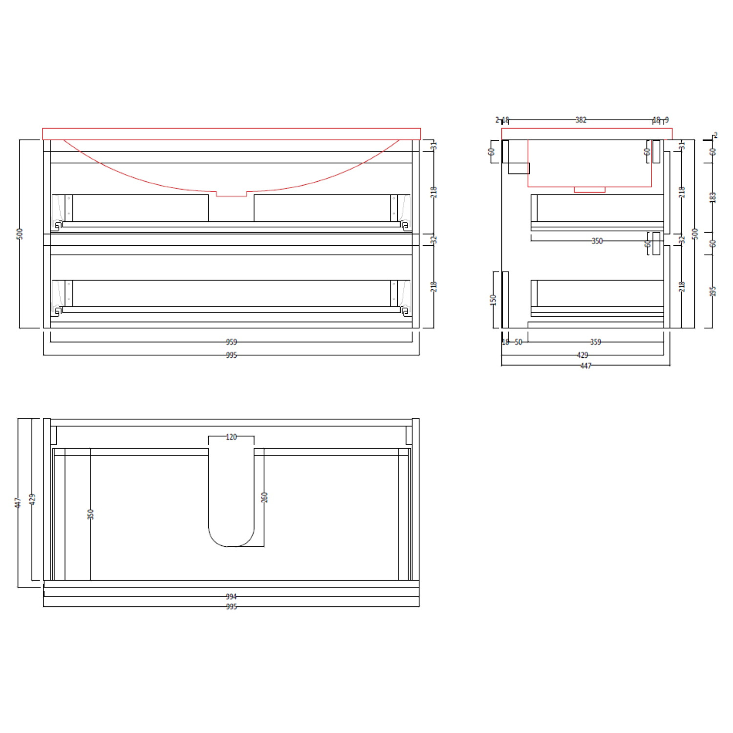 Belangrijk! Dit badmeubel wordt standaard geleverd exclusief kraan, spiegel en sifon: deze artikelen dient u apart bij te bestellen om het meubel compleet te maken. De overloop zit niet in het midden van de wastafel i.v.m. te weinig ruimte voor de montage van de kraan.