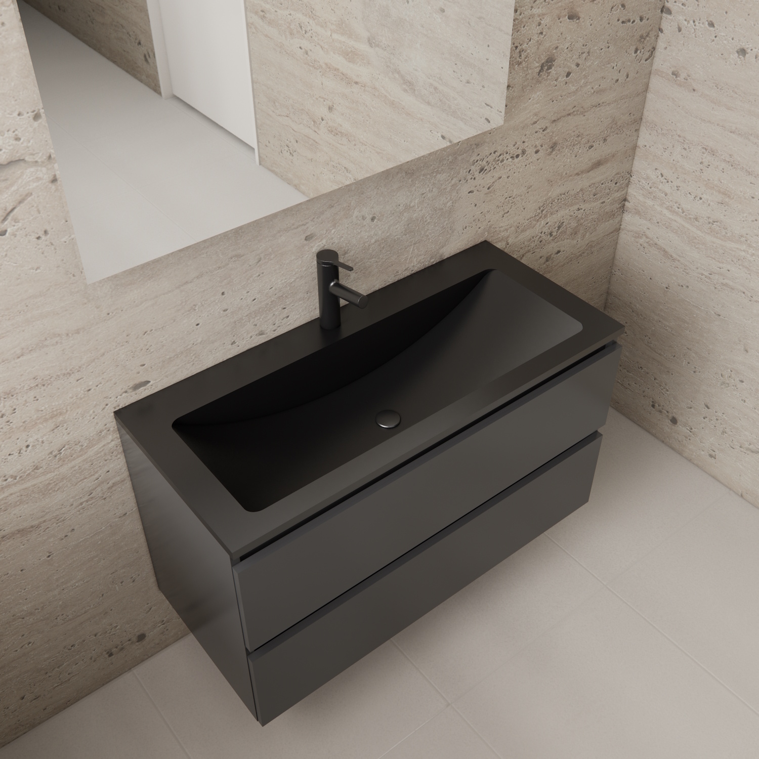 De wastafel is gemaakt van cast marble. Met een afmeting van 98.9 x 50 centimeter heeft u genoeg ruimte voor het gezin om al u toiletartikelen of handdoeken op te bergen. Cast marble wastafels zijn in alle opzichten perfect. Gegoten marmer is een tijdloos materiaal dat, in tegenstelling tot keramische materialen, een grote verscheidenheid aan vormen toelaat. Dit maakt het mogelijk om vormen te maken die ondenkbaar zouden zijn met gewone keramiek. De gegoten wastafels profiteren daarom van perfect schone randen en perfect vlakke schapruimte. De uiteindelijke oppervlakteafwerking bestaat uit een laag geverfde hars (gelcoat) die het gietmarmer beschermt tegen krassen en tegen veelgebruikte cosmetische en hygiëneproducten. De levering van de wastafel is inclusief een overloopdop).