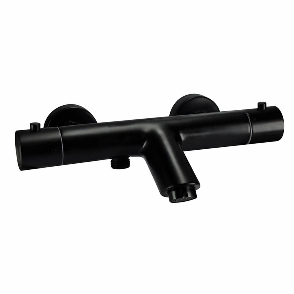 Deze badmengkraan is universeel en ruimtebesparend. De badmengkraan is uitgerust met keramische schijven en is vervaardigd uit messing verchroomd metaal met de prachtige mat zwarte kleur. Het fijne van een thermostaatkraan, is dat het door u ingestelde temperatuur van het water exact gelijk blijft. Via thermostatische kleppen wordt het koude en hete water zo gemengd, dat het water een constante temperatuur heeft. Wanneer de watertoevoer wijzigt, reageert de thermostaat direct, waardoor de temperatuur van het water gelijk blijft. Met de aan-en uitknop bepaalt u of het water uit de uitloop of uit de doucheslang komt.