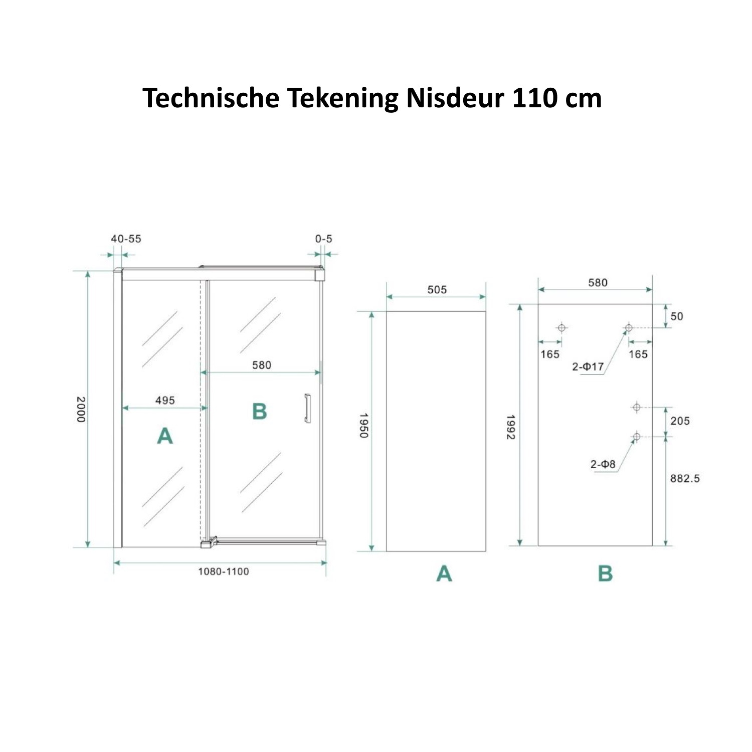 Let op: omdat de nisdeur ook op een douchebak te plaatsen is zijn de afmetingen 2 à 3 cm kleiner dan aangegeven op de specificaties!