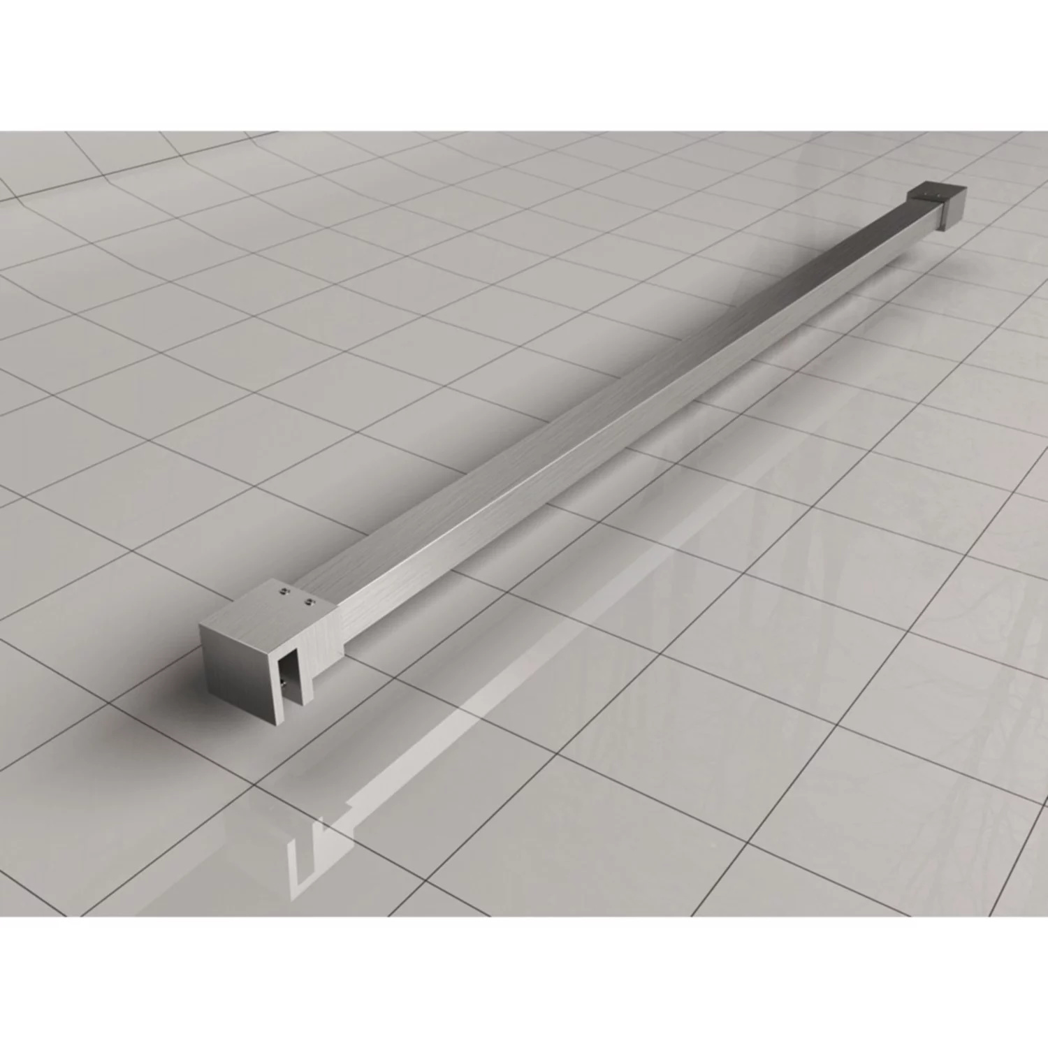 Deze Pro Line inloopdouche van het merk Aqua Splash is een bijzondere variant. Het betreft een douchewand die is voorzien van helder glas. In tegenstelling tot de meeste inloopdouches, die direct aan de muur bevestigd worden, is deze inloopdouche vrijstaand. Met behulp van de twee stabilisatiestangen in een RVS geborstelde kleur wordt deze wand juist indirect aan de muur bevestigd, wat een bijzonder sfeervol effect geeft. Beide stabilisatiestangen hebben een lengte van 120 cm.