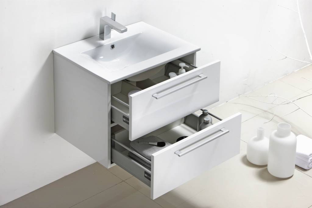Luxe badkamermeubel met 2 opberglades die gebruik maken van het soft close lade systeem. Tevens hebben de opberglades ook een greep, waardoor het vastpakken van de lades makkelijker is. Dit badmeubel is ook tevens te verkrijgen in de kleur hoogglans antraciet.