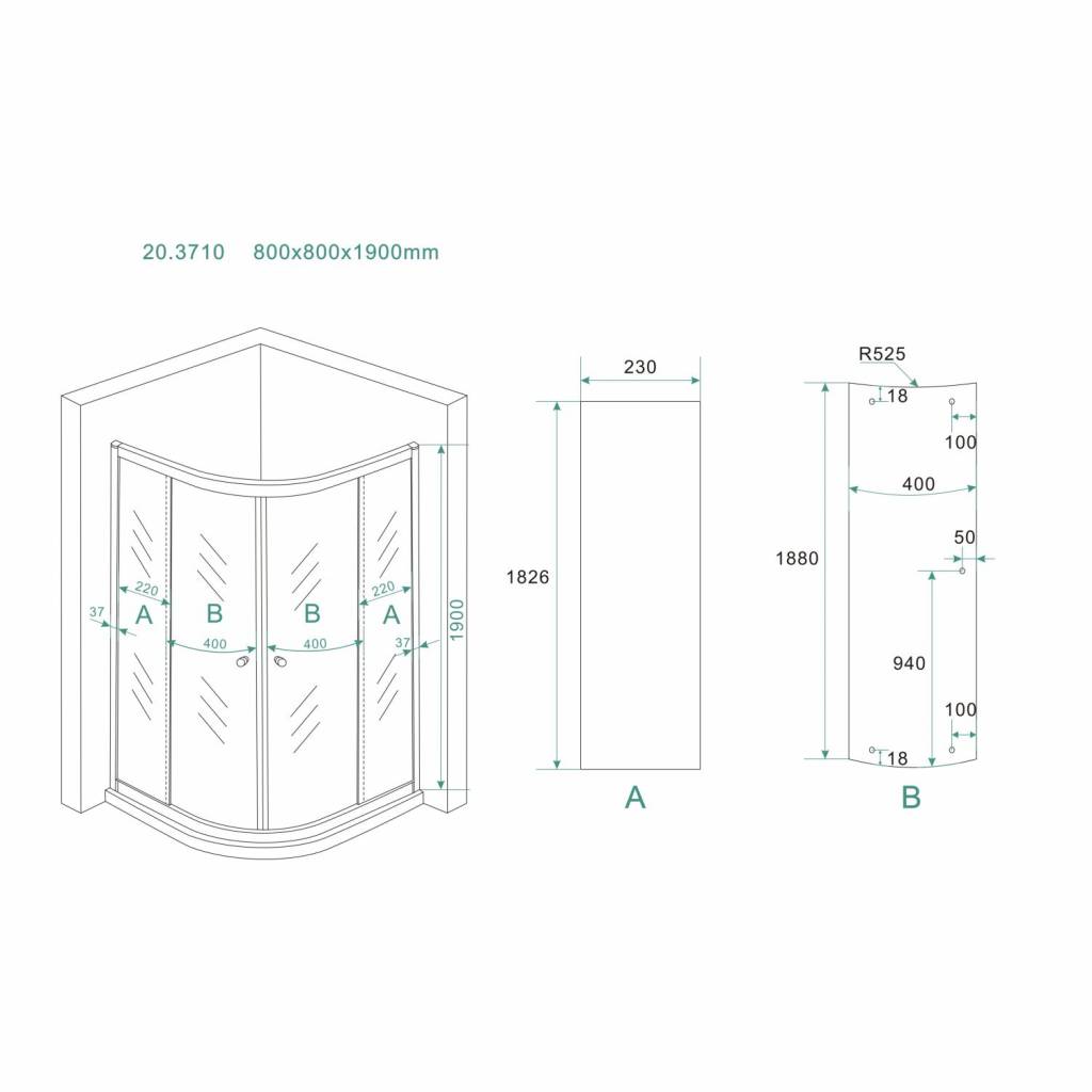 Douchecabine Aktie Kwartrond 80x80x190 cm 5mm Helder Glas kan u meteen op de vloer plaatsen en eventueel transparant afkitten, of in een douchebak plaatsen. De instapbreedte is 60 cm.