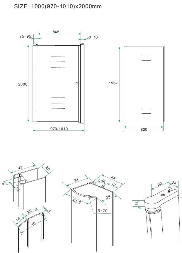 Nisdeur van 60, 70, 80, 90 of 100 cm breed bij 202 cm hoog. Deze nisdeur heeft een mooi aluminium profiel met 8 mm helder veiligheidsglas met anti-kalk coating. Dit product staat garant voor kwaliteit.