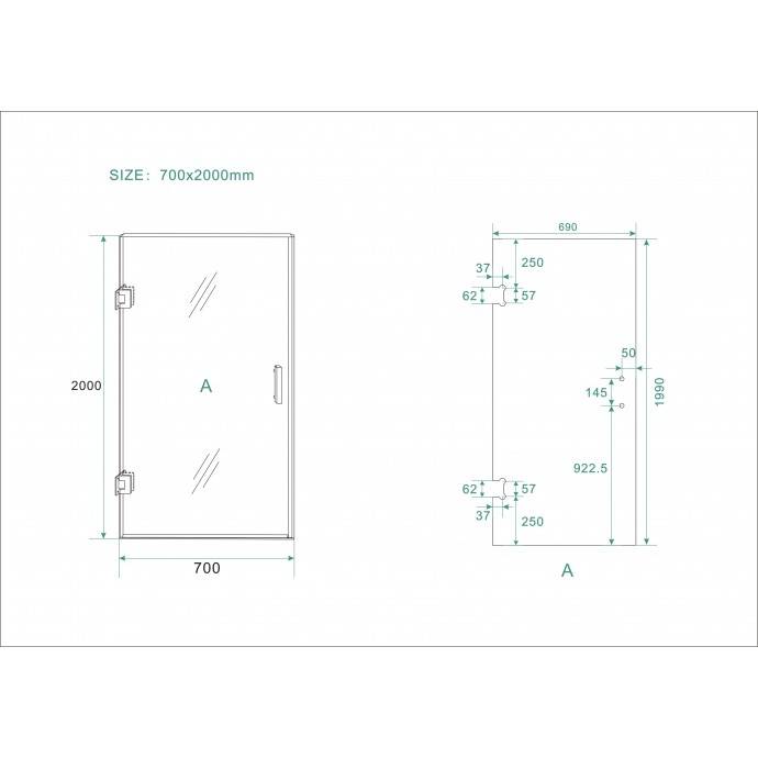 Nisdeur zonder profiel met 8 mm NANO glas, van het merk Aqua Splash. Deze nisdeur beschikt over messing verchroomde scharnieren en is zowel links als rechts draaibaar. Deze nisdeur kunt u zowel op een douchebak of op de vloer plaatsen. Verkrijgbaar in 4 verschillende maten.