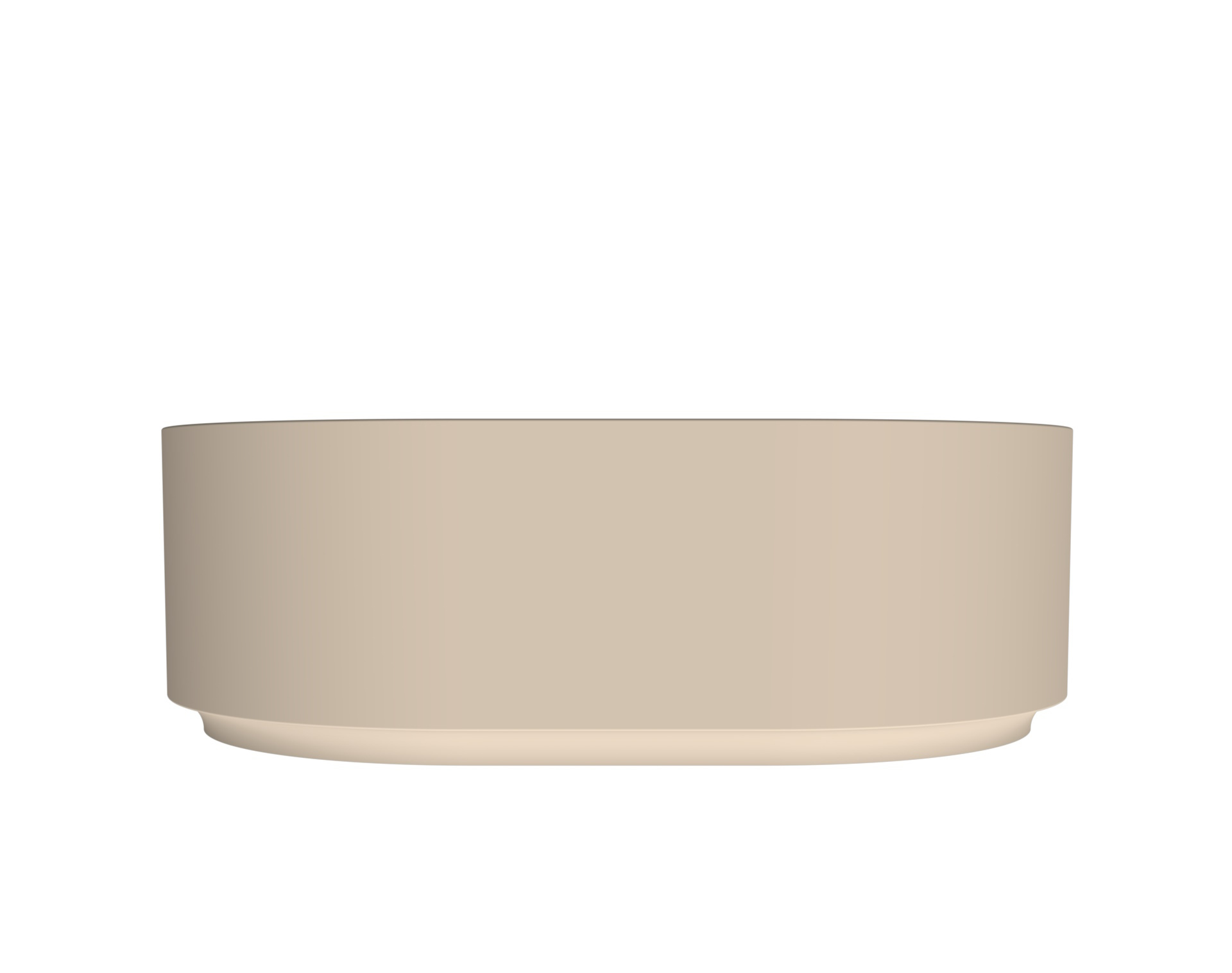 Deze specifieke waskom is ovaal en heeft een breedte van 40 cm. De kom is 28 cm diep en 13 cm hoog. Deze kom is uitgevoerd in een mat zand kleur.