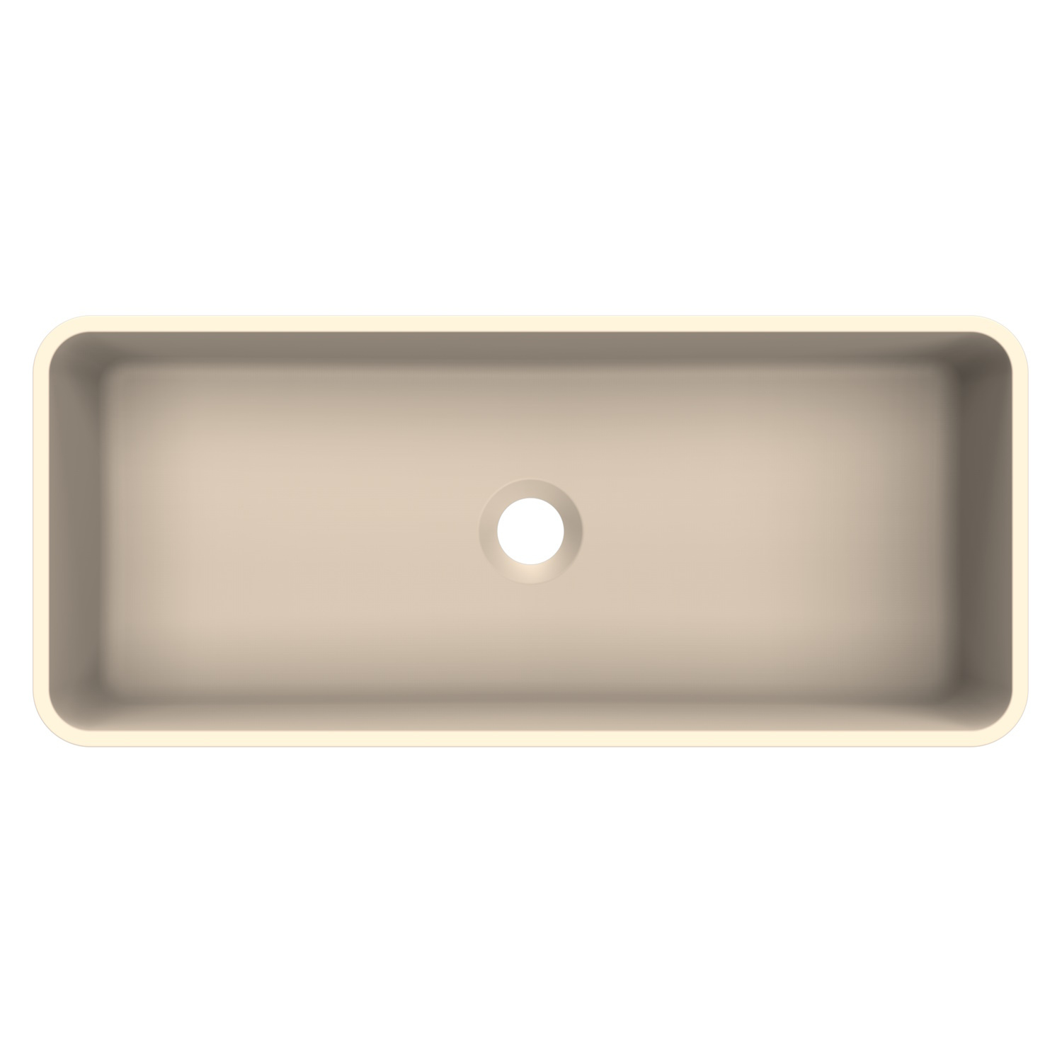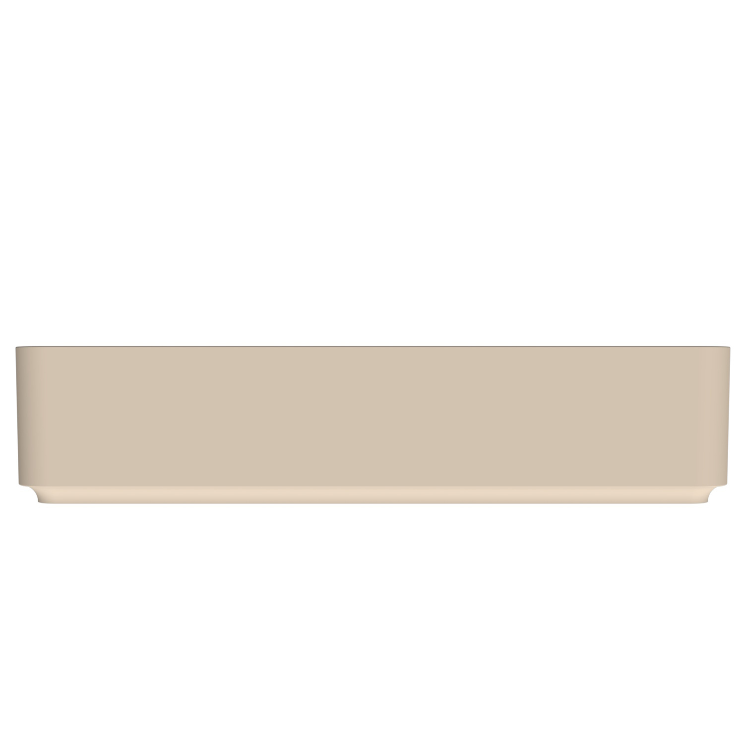 Deze specifieke waskom is rechthoekig en heeft een breedte van 60 cm. De kom is 26 cm diep en 13 cm hoog. Deze kom is uitgevoerd in een mat zand kleur.