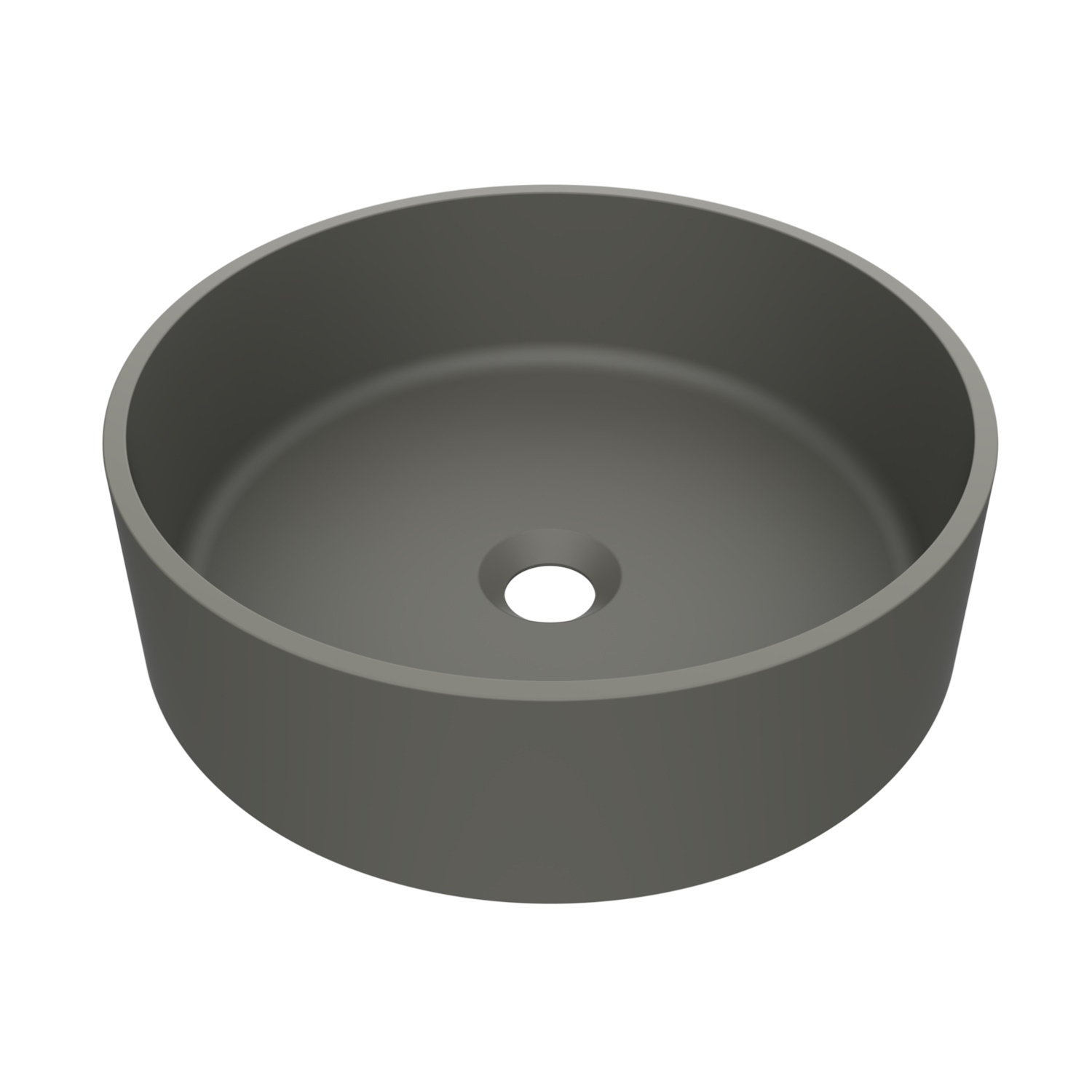 Deze specifieke waskom is rond en heeft een diameter van 40 cm. De kom is 13 cm hoog. Deze kom is uitgevoerd in een mat betonen kleur.