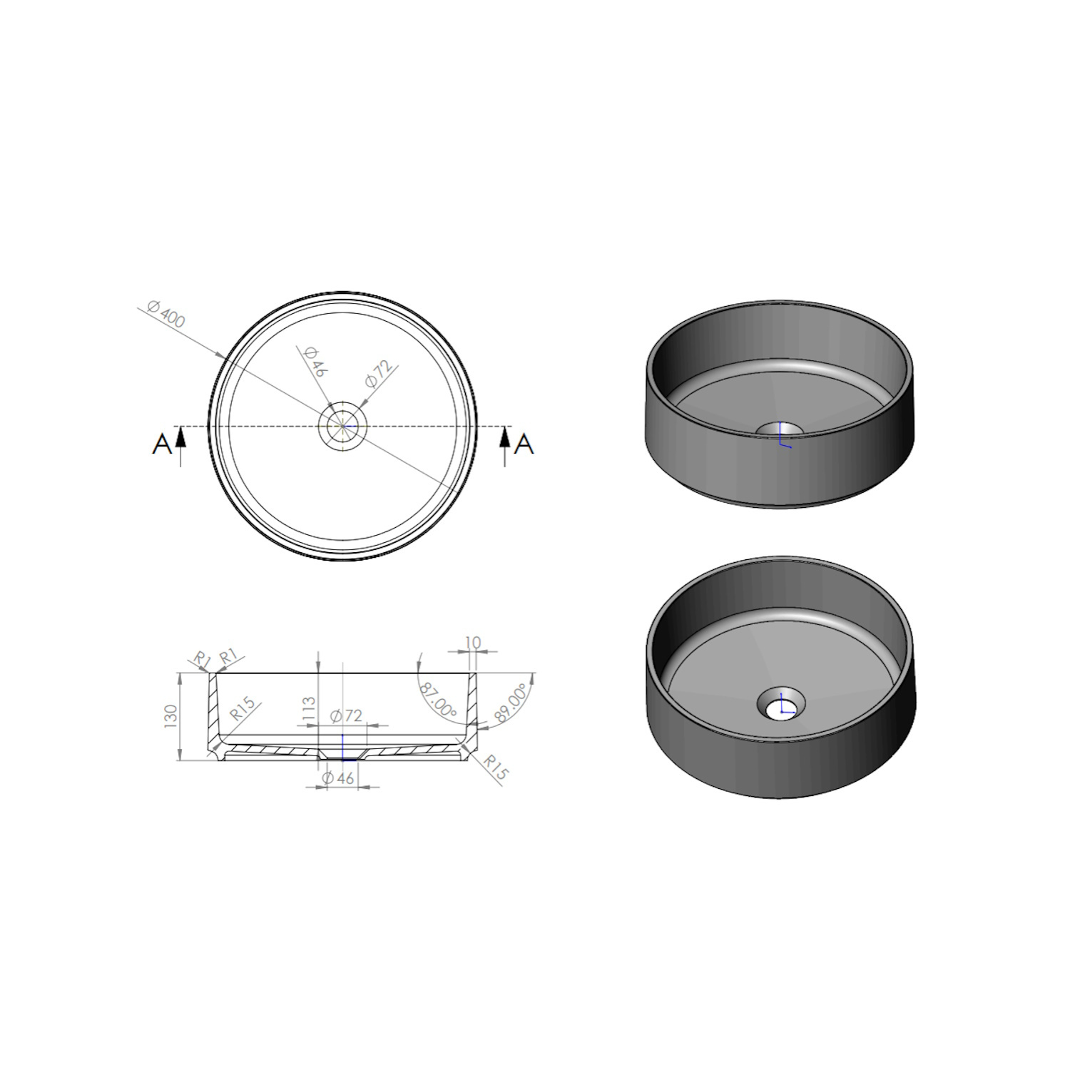 De waskommen uit deze serie zijn gemaakt van Cast Marble. Cast Marble bestaan uit zwaar polymeerhars gemengd met gebroken marmer. Deze mix wordt gevormd naar de juiste mal en gecoat met een duurzame matte of glanzende gelcoat. Deze techniek zorgt ervoor dat er bijna geen oneffenheden op het oppervlak zitten. Daarnaast zitten er geen open poriën op het oppervlak, waar vuil in kan gaan zitten. Hierdoor zijn de waskommen gemakkelijk schoon te maken en schoon te houden.