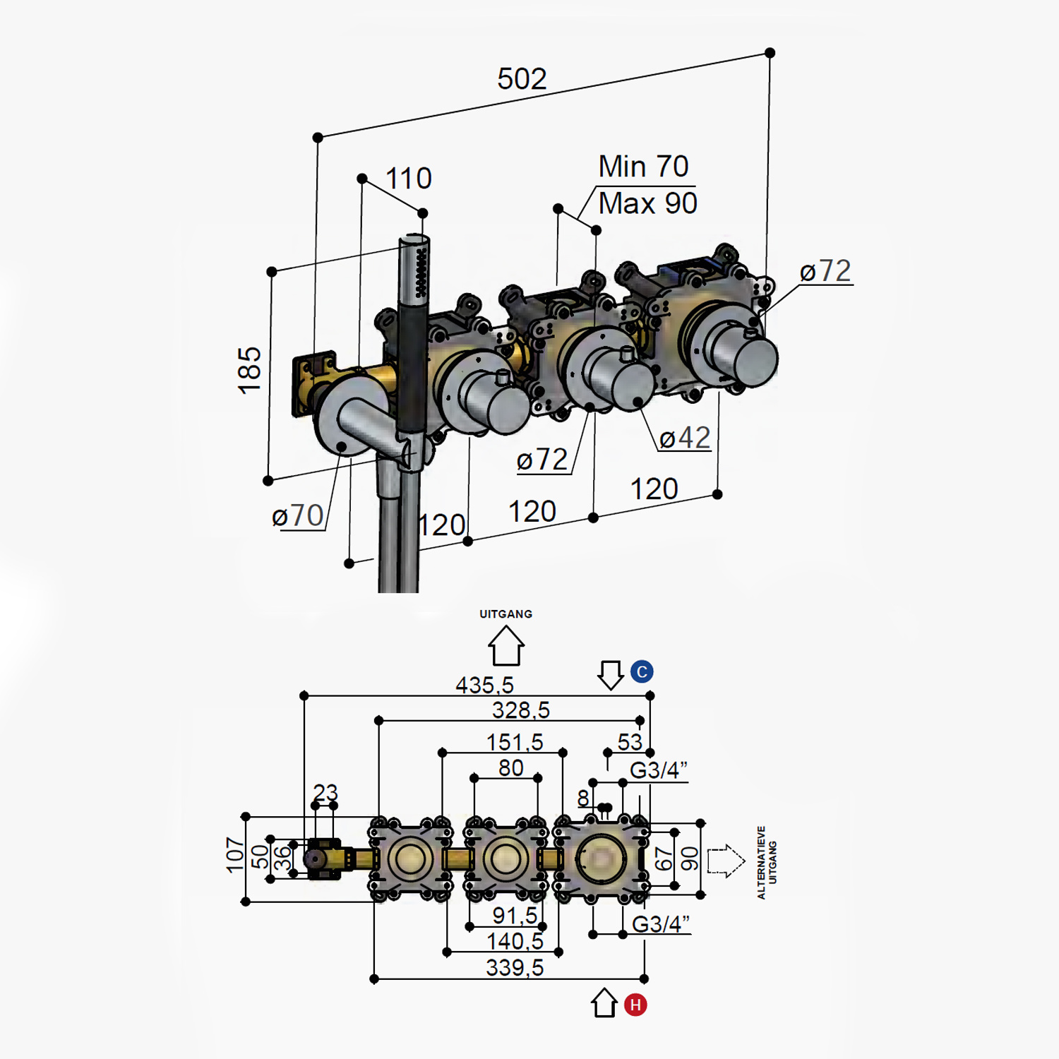 Let op! Deze douchethermostaat wordt geleverd exclusief inbouwdeel, deze kunt u bij verwante producten toevoegen.