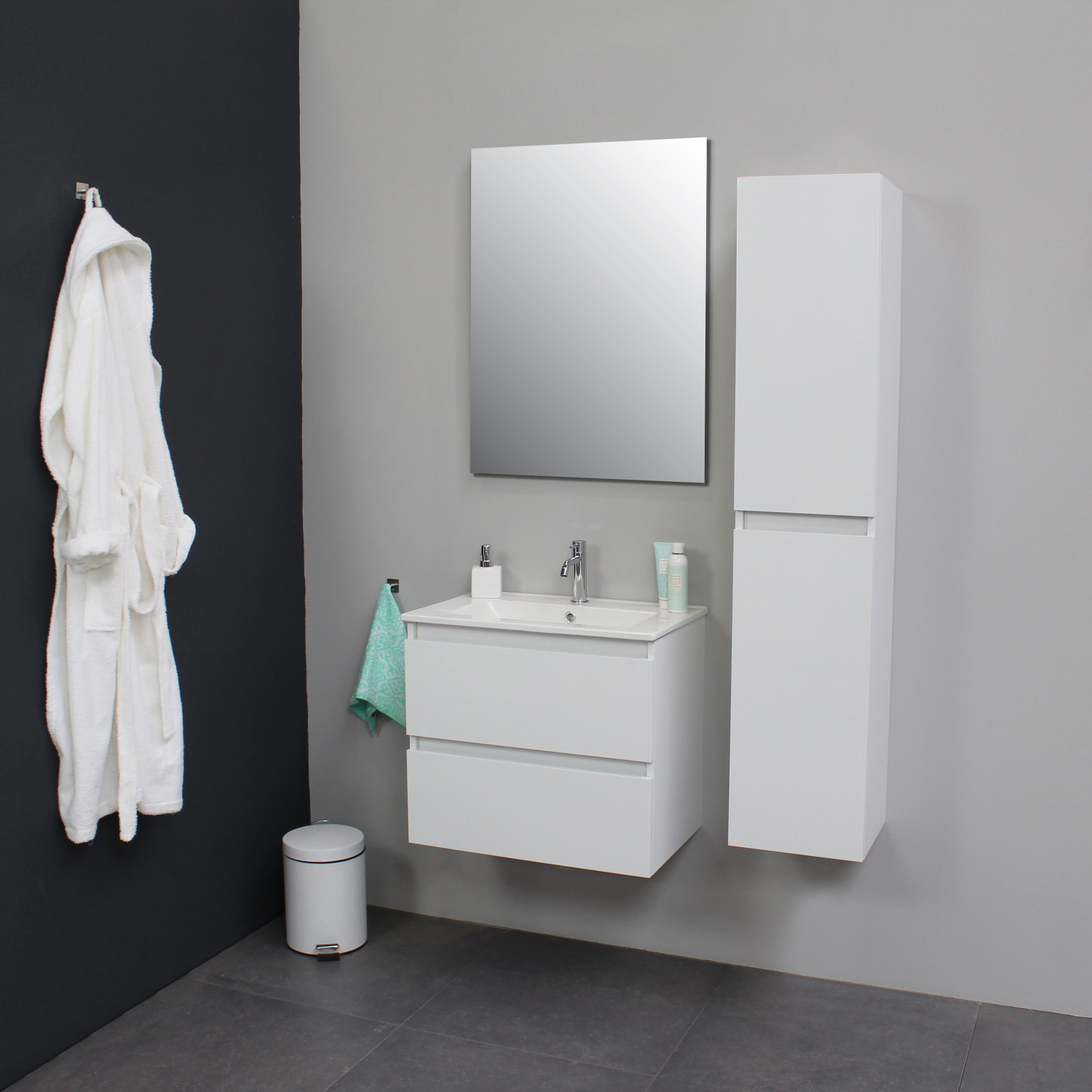 Dit prachtige badmeubel van Boss & Wessing, beschikt over een hoogglans wit kleurige onderkast met een wastafel van porselein. De wastafel wordt geleverd met kraangat, dus heeft u de optie om een opbouwkraan toe te voegen aan uw wastafel. Het voordeel van porselein is, is dat het harder is dan ander soort aardewerk. Daarnaast ook een stuk witter, waardoor het zorgt voor een betere uitstraling in de badkamer. Het badmeubel wordt geleverd inclusief spiegel.