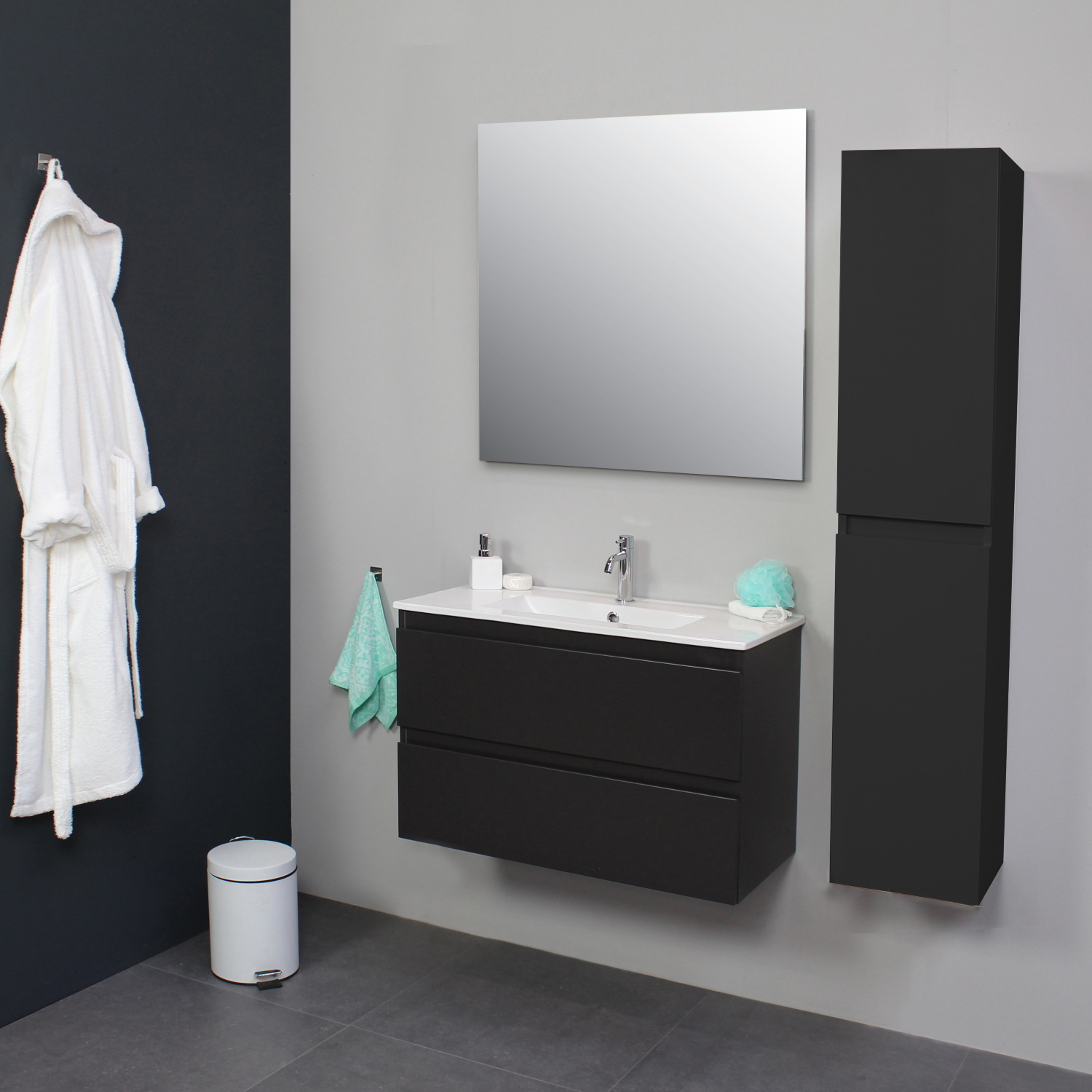 Dit prachtige badmeubel van Boss & Wessing, beschikt over een antraciet kleurige onderkast met een wastafel van porselein. De wastafel wordt geleverd met kraangat, dus heeft u de optie om een opbouwkraan toe te voegen aan uw wastafel. Het voordeel van porselein is, is dat het harder is dan ander soort aardewerk. Daarnaast ook een stuk witter, waardoor het zorgt voor een betere uitstraling in de badkamer. Het badmeubel wordt geleverd inclusief spiegel.