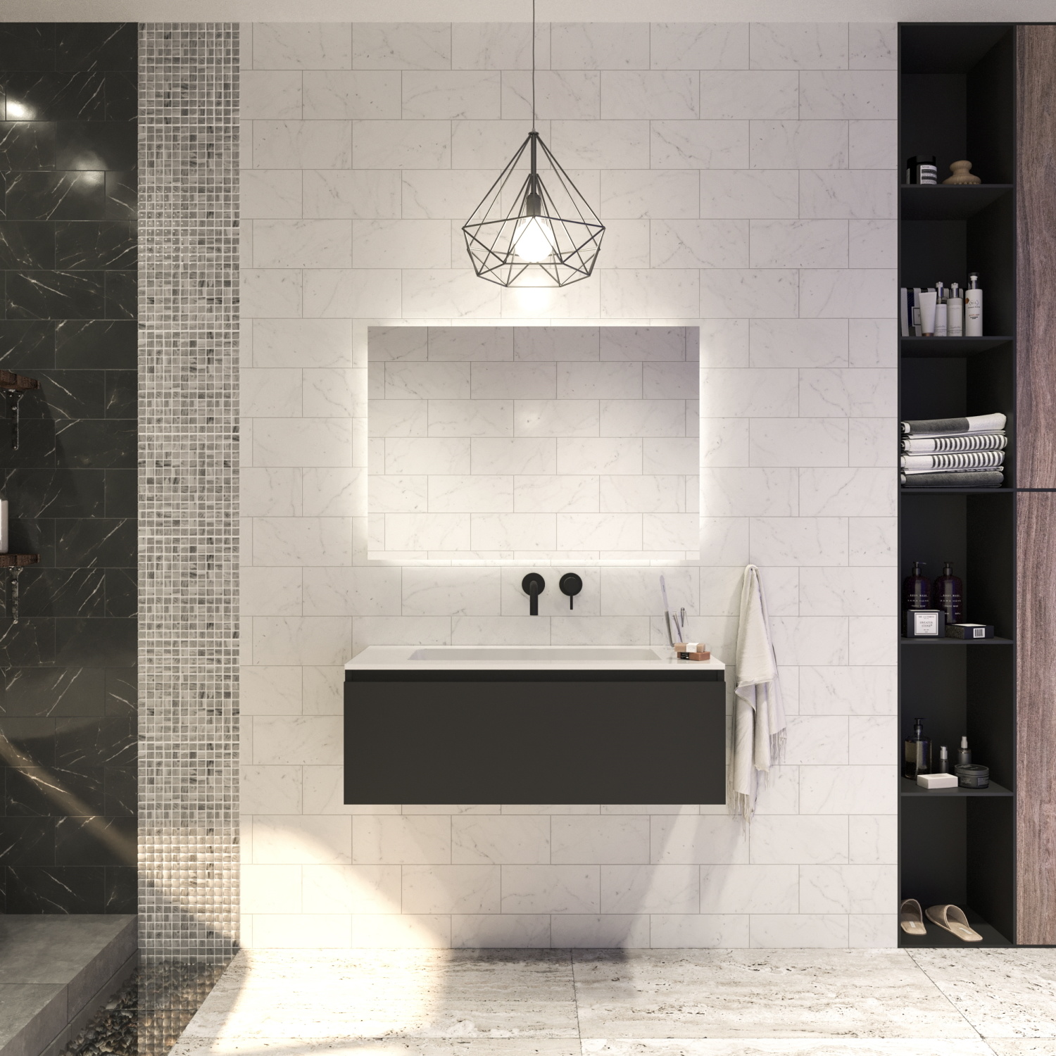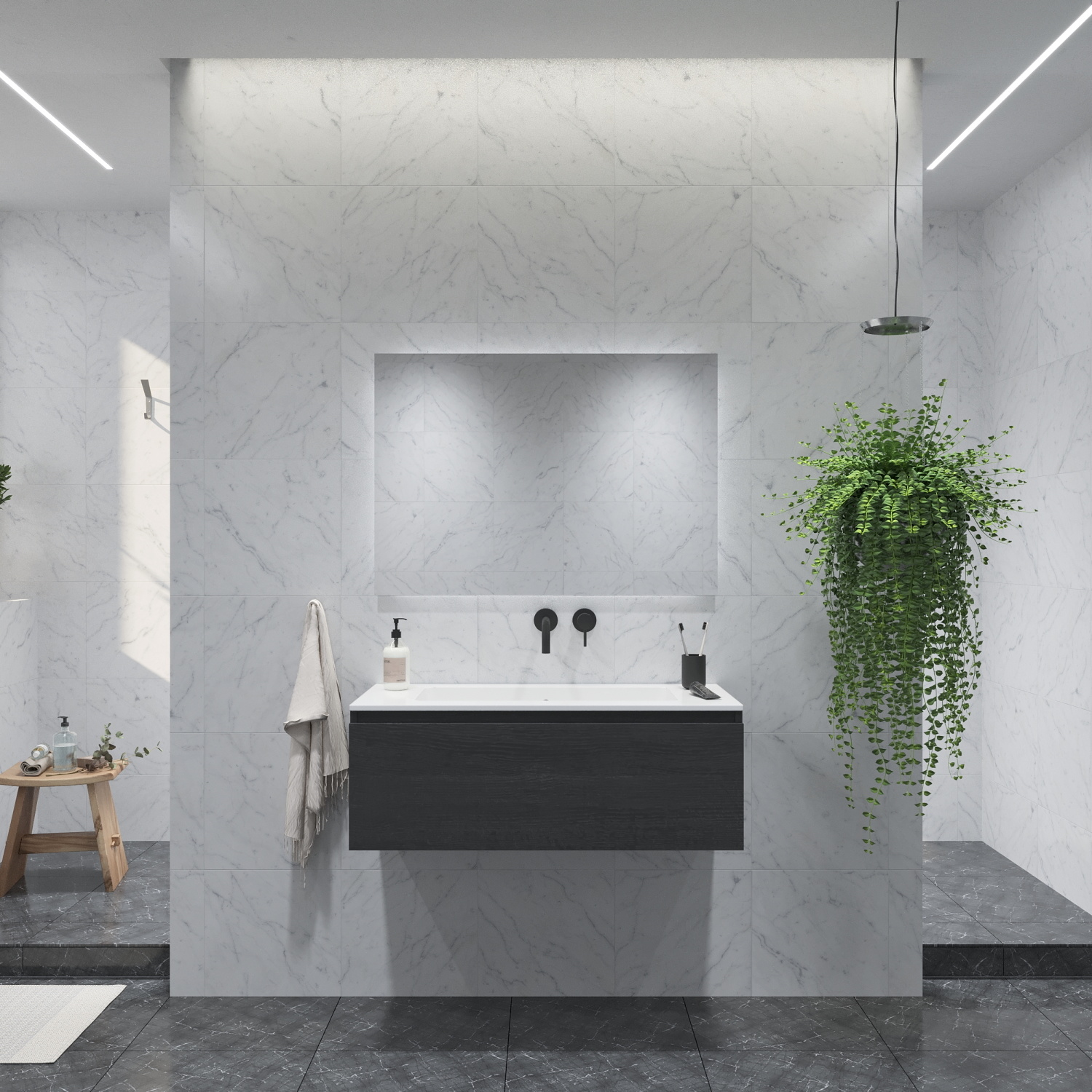 De Eros badkamermeubelset van Gliss Design is een echte blikvanger in uw badkamer. Het meubel is gemaakt van Melamine, waardoor deze perfect te gebruiken is in een natte ruimte. Melamine staat bekend om de onbreekbare en krasvrije eigenschappen. Daarnaast is het harde en gladde oppervlak gemakkelijk te onderhouden, omdat vuil en bacteriën geen kans krijgen om zicht te hechten. Door zijn compacte design blijft uw badkamer ruimtelijk ogen. Het doel van Gliss is om luxe en kwaliteit te creëren voor een betaalbare prijs. Dat is met de Eros serie dan ook zeker gelukt!