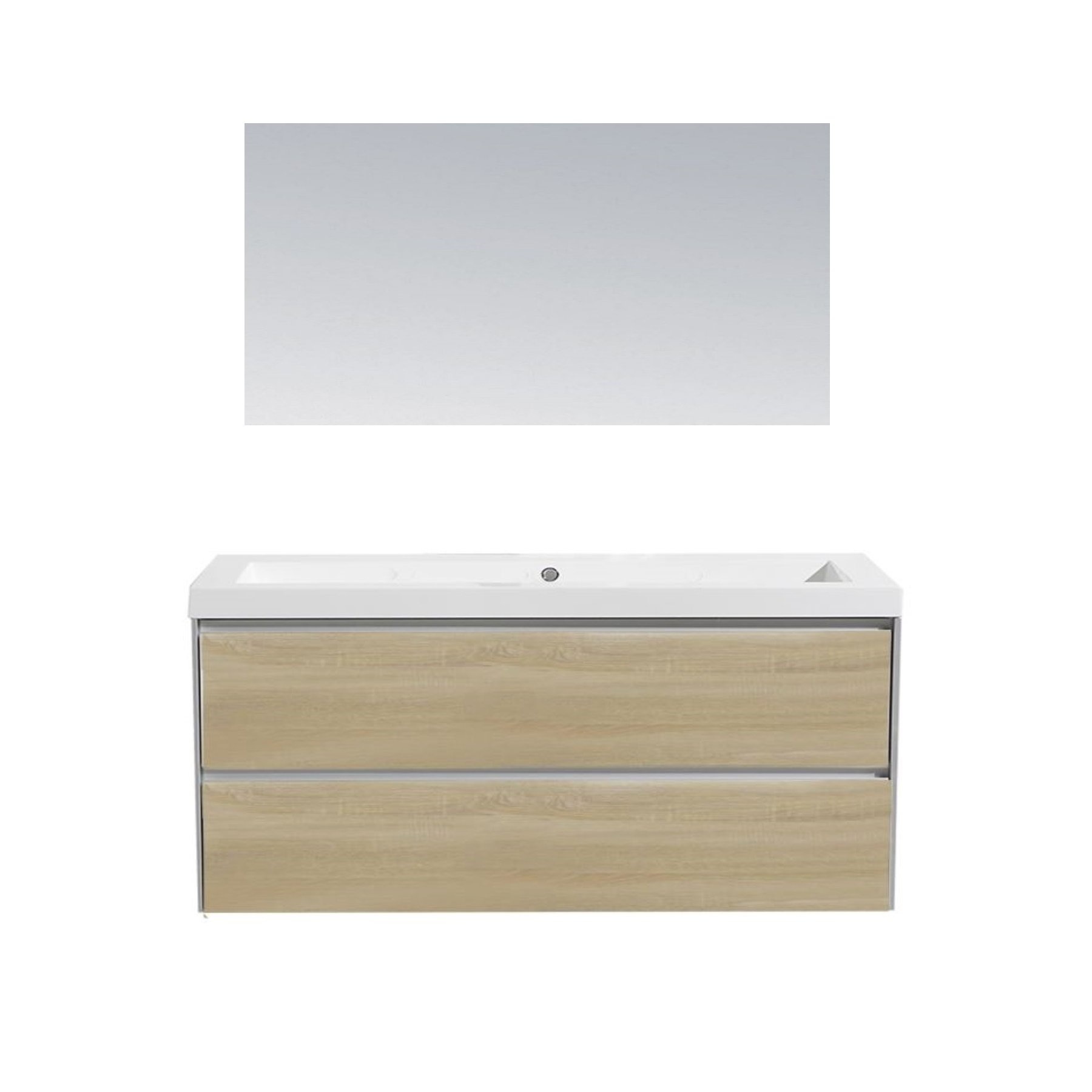 Dit badkamermeubel van Sanilux is een complete badmeubelset inclusief spiegel en wastafel. De onderkast is gemaakt van multiplex gefineerde houtlagen en is waterdicht. De onderkast wordt geleverd in de kleur Light Wood en heeft een afmeting van 120x47x50 cm. Zoals gezegd is de badmeubelset inclusief wastafel, en deze is van het materiaal, mineraalmarmer. De wastafel wordt geleverd in een witte kleur met een afmeting van 120x47x5 cm. Ook zit er een spiegel bij deze badmeubelset, met een afmeting van 120x70x2.5 cm.