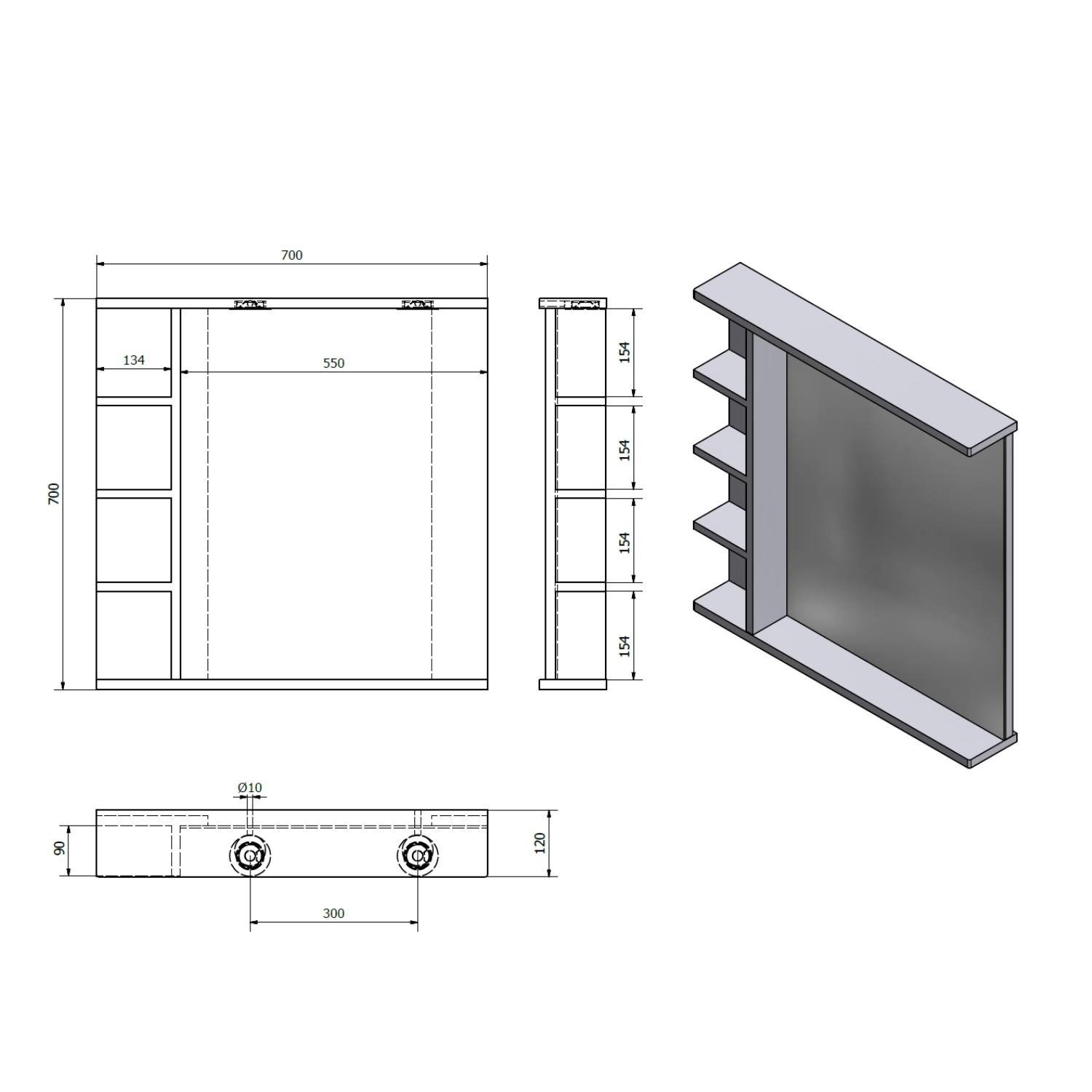 Badkamerspiegel Sapho Korin 70x70x12 cm Incl. LED Verlichting en Planken