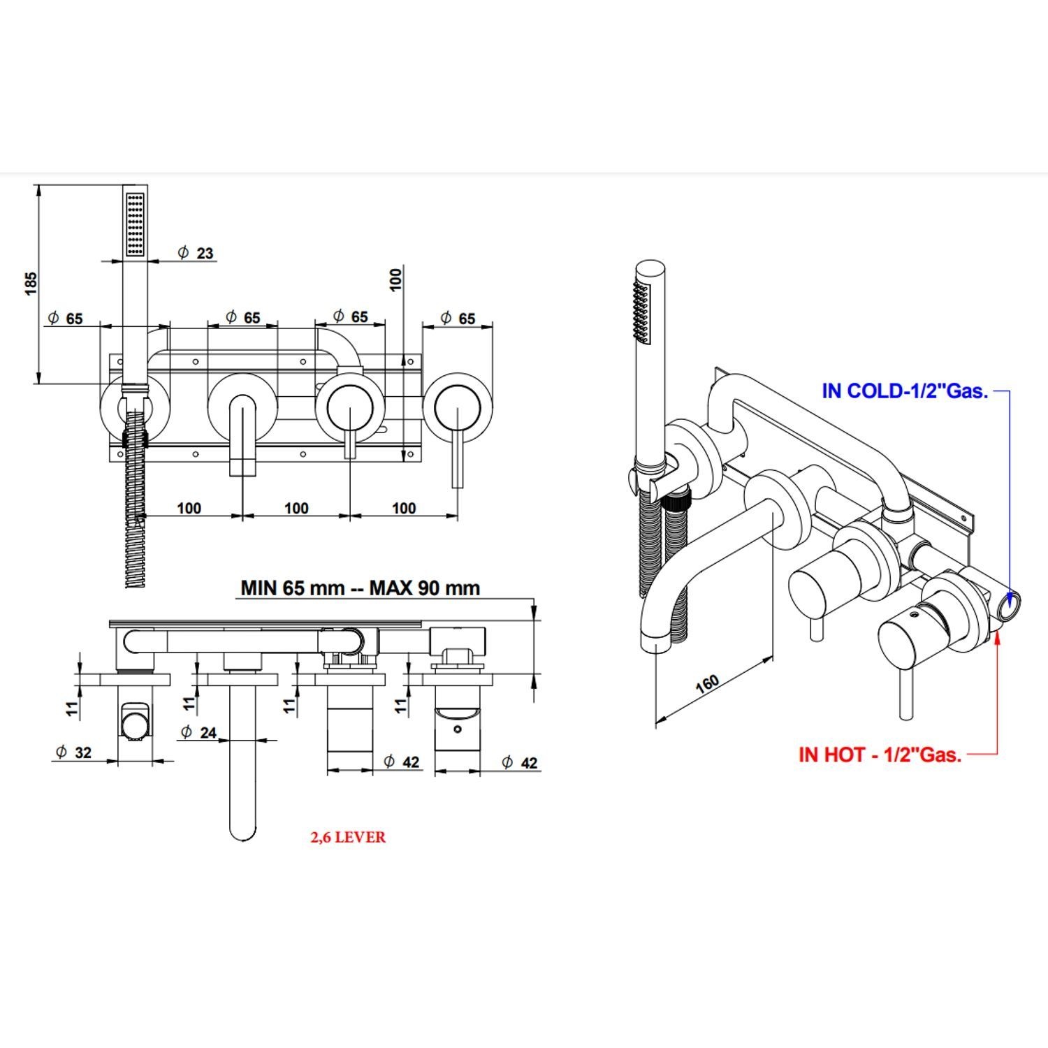 De uitloop van deze kraan is 16 cm lang. De afstand tussen de kranen is 10 cm. De diameter van de rozetten is 6,5 cm. De inbegrepen handdouche heeft een lengte van 18,5 cm. Het is een mengkraan. Dat betekent dat u met de hendel de temperatuur tot de gewenste warmte mengt.
