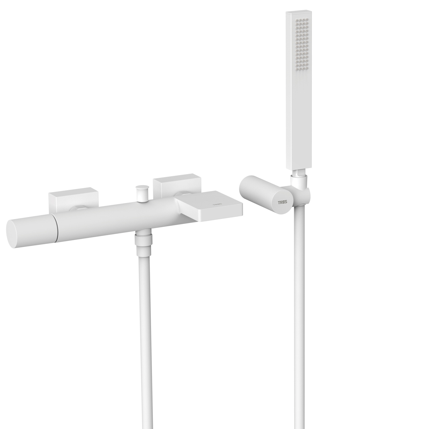Deze mat witte badkraan van de 'Project' serie van Tres geeft uw badkamer een strakke, moderne touch. Wit geeft uw badkamer een rustige en ruimtelijke uitstraling. De lengte van de thermostaatkraan is 29,1 cm en de diepte is 13,6 cm. De H.O.H. afstand is verstelbaar van 13,5 tot 16,5 cm. Wat uniek is aan deze badkraan is zijn watervaluitloop. Hij is van messing in RVS look.