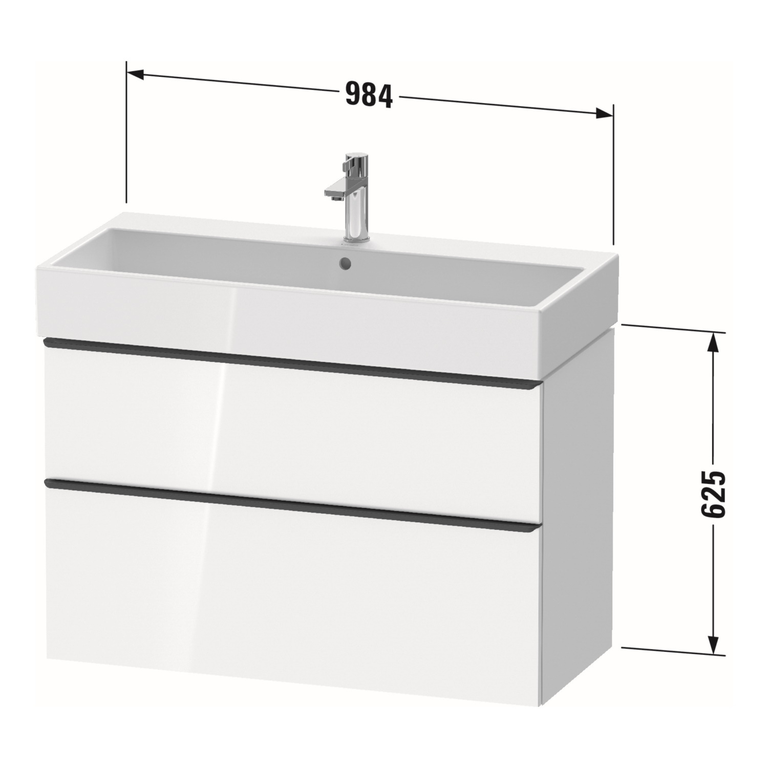 Dit badmeubel van Duravit is een prachtige aanwinst voor in de badkamer. Het badmeubel heeft een breedte van 98.4 cm, hoogte van 62.5 cm en een diepte van 44.2 cm. Het is gemaakt van hoogwaardig 3-laagsspaanplaat met hoge dichtheid.