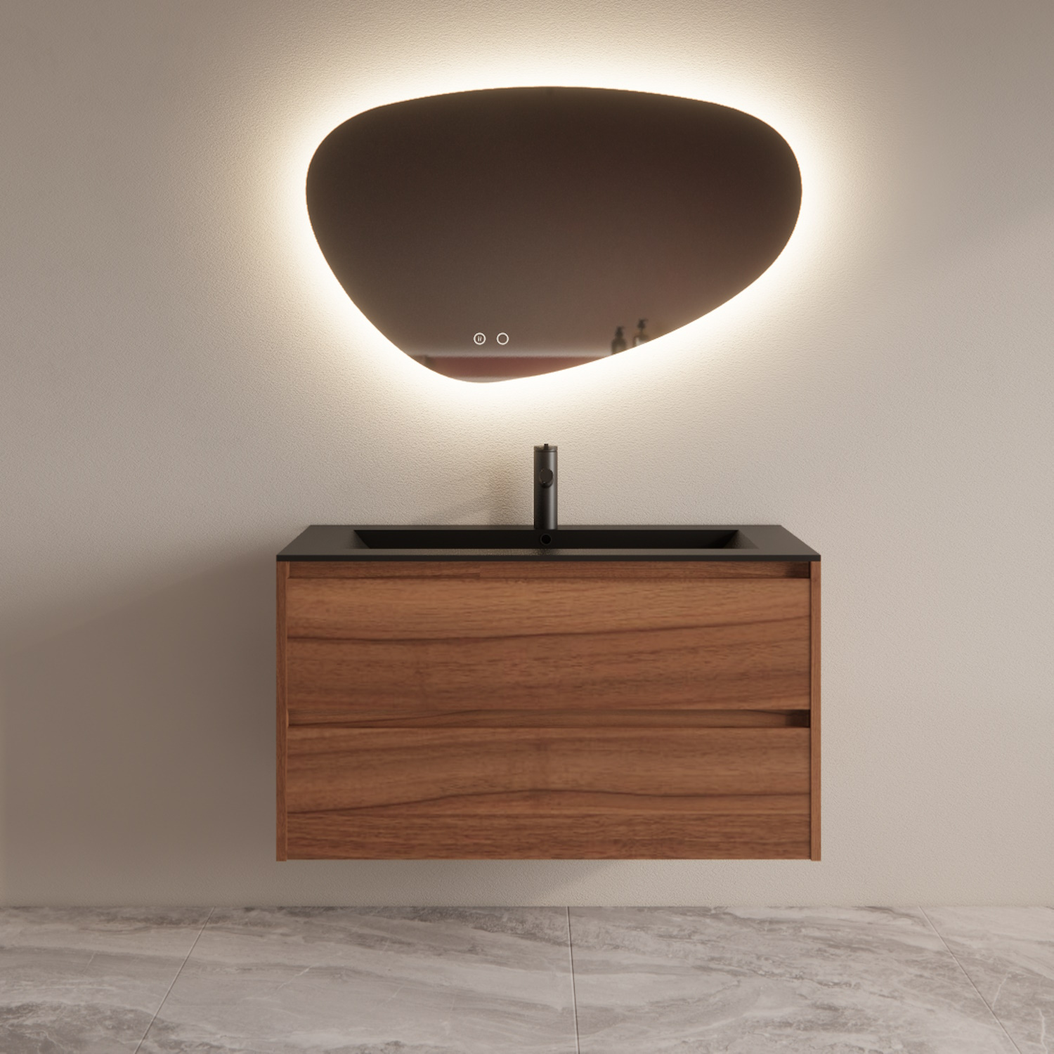 De onderkast van het meubel is gemaakt van 18 mm Melamine plaat (FSC Gekeurd). De twee lades van dit badkamermeubel zijn uitgevoerd met een soft-close techniek. Dit houd in dat wanneer de lade wordt gesloten, deze automatisch wordt afgeremd en zelf automatisch rustig sluit. Deze onderkast wordt voorgemonteerd geleverd.