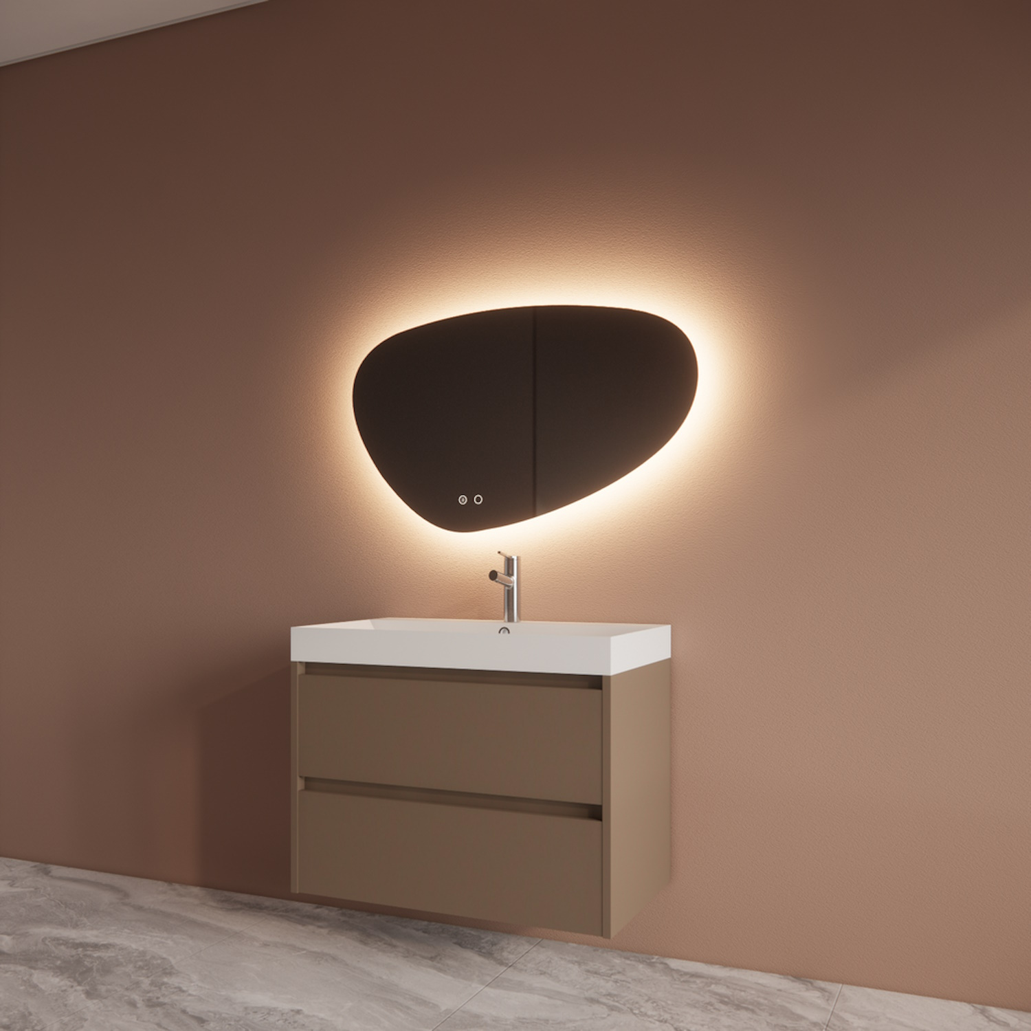 De onderkast van het meubel is gemaakt van 18 mm Melamine plaat (FSC Gekeurd). De twee lades van dit badkamermeubel zijn uitgevoerd met een soft-close techniek. Dit houd in dat wanneer de lade wordt gesloten, deze automatisch wordt afgeremd en zelf automatisch rustig sluit. Deze onderkast wordt voorgemonteerd geleverd.