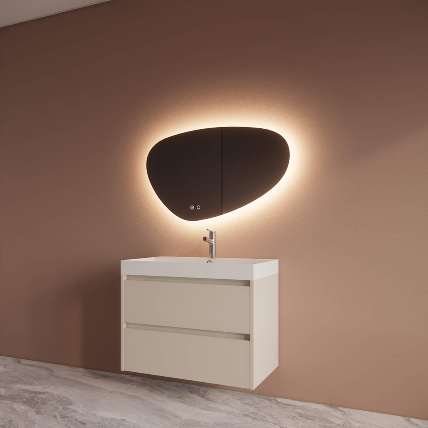 De onderkast van het meubel is gemaakt van 18 mm Melamine plaat (FSC Gekeurd). De twee lades van dit badkamermeubel zijn uitgevoerd met een soft-close techniek. Dit houd in dat wanneer de lade wordt gesloten, deze automatisch wordt afgeremd en zelf automatisch rustig sluit. Deze onderkast wordt voorgemonteerd geleverd.
