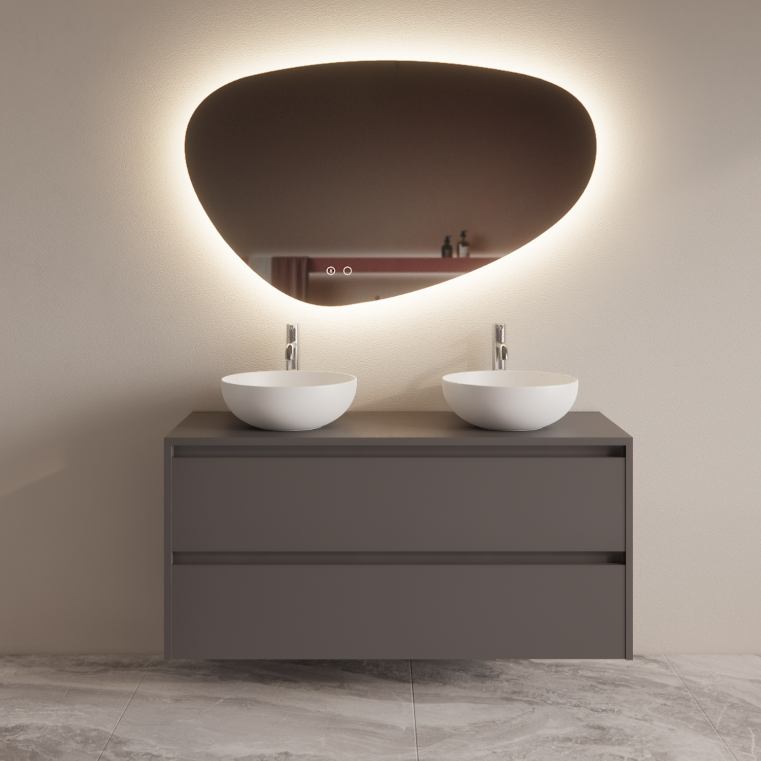 De onderkast van het meubel is gemaakt van 18 mm Melamine plaat (FSC Gekeurd). De twee lades van dit badkamermeubel zijn uitgevoerd met een soft-close techniek. Dit houd in dat wanneer de lade wordt gesloten, deze automatisch wordt afgeremd en zelf automatisch rustig sluit. Deze onderkast wordt voorgemonteerd geleverd.