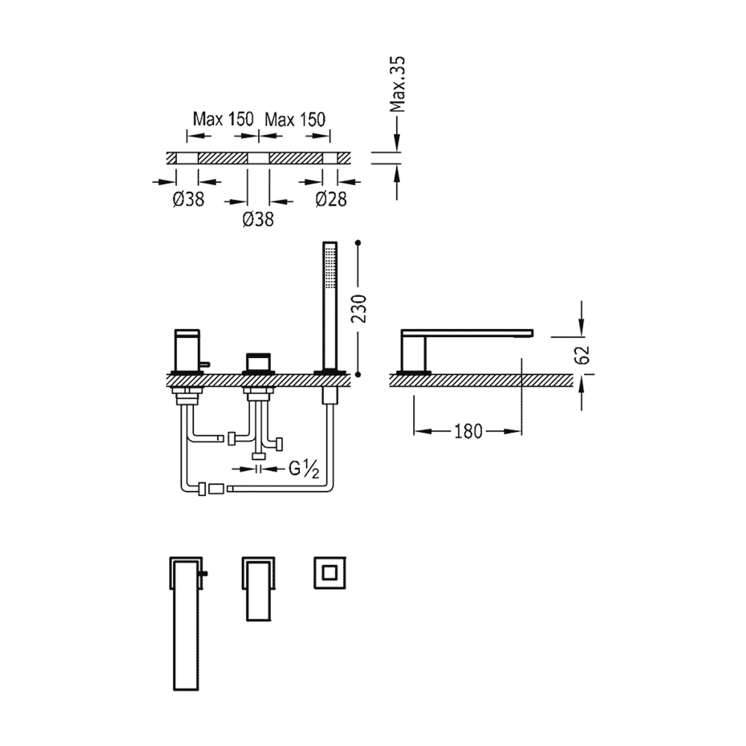 Houdt u van minimalisme en rust? Kies dan voor een badrandkraan in de kleur mat wit. Dit oogt strak, modern en rustig. De set heeft een hoekig design, wat hem een robuuste look geeft. De uitloop heeft een lengte van 18 cm. De H.O.H. afstand tussen de hendel, uitloop en de handdouche zijn verstelbaar tot maximaal 15 cm.