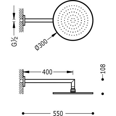 Barras Y Ducha Douchearm voor aan de muur met antikalk Ø 300 mm.
