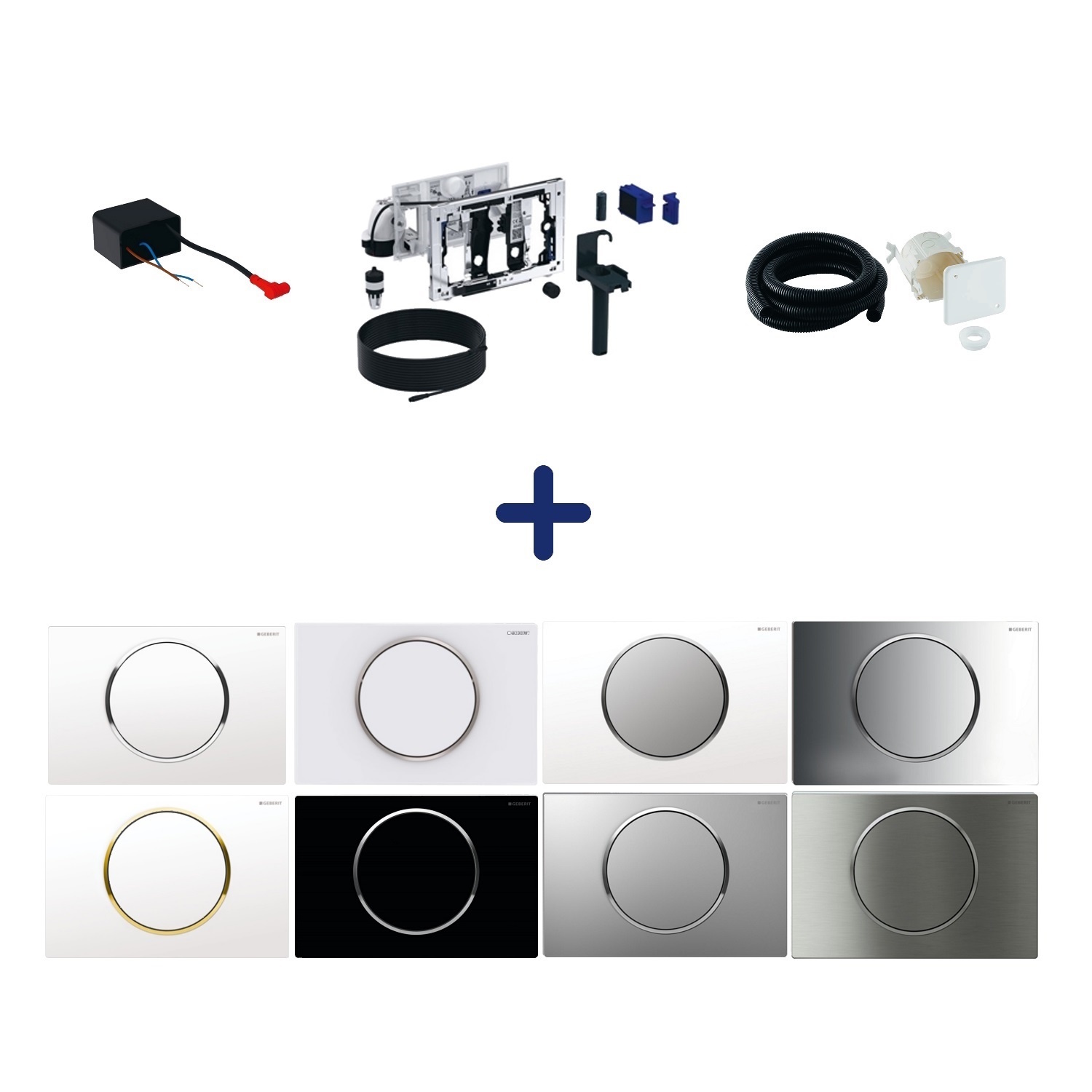 Inclusief Sigma 10 bedieningsplaat zwart, module geurzuivering met toiletstickhouder, voedingsapparaat en ruwbouwset.