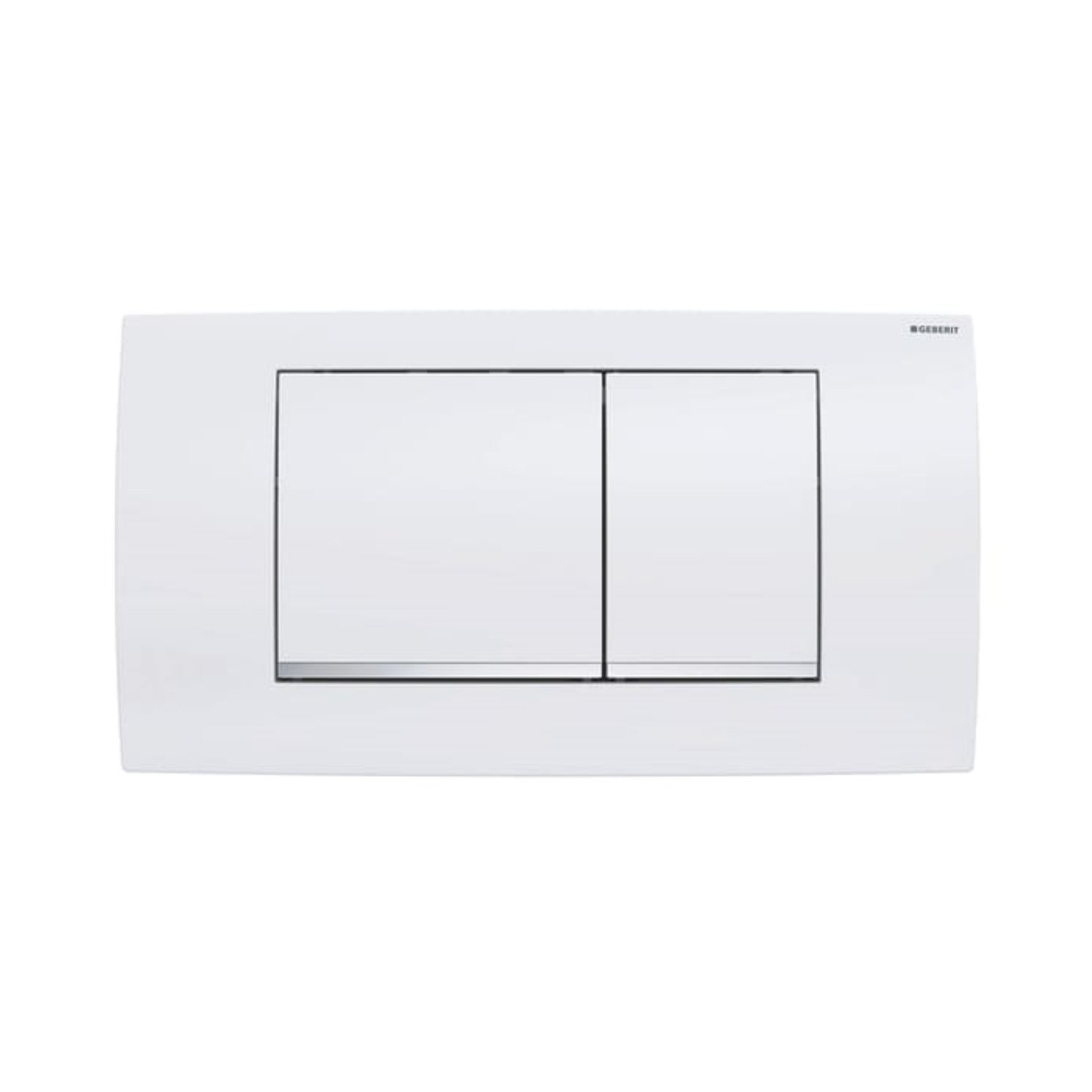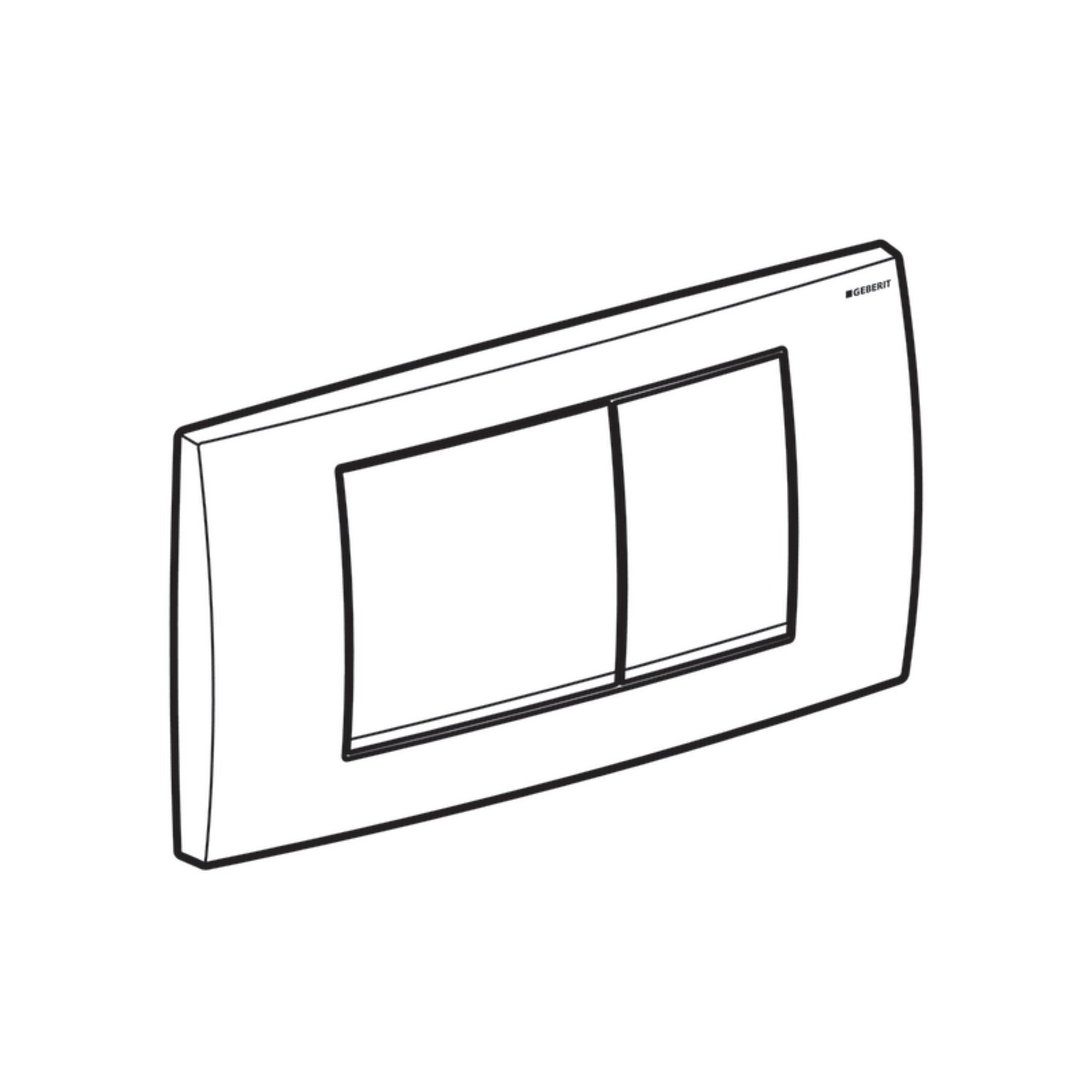 De Bedieningsplaat witte Geberit Twinline 30 Frontbediening heeft 2 mooie rechthoekige bedieningsknoppen en alleen geschikt voor frontbediening. Dat betekent dat de drukplaat alleen gemonteerd kan worden op een inbouwreservoir met een frontbediening. Verticaal tegen de muur aan en niet op het planchet.