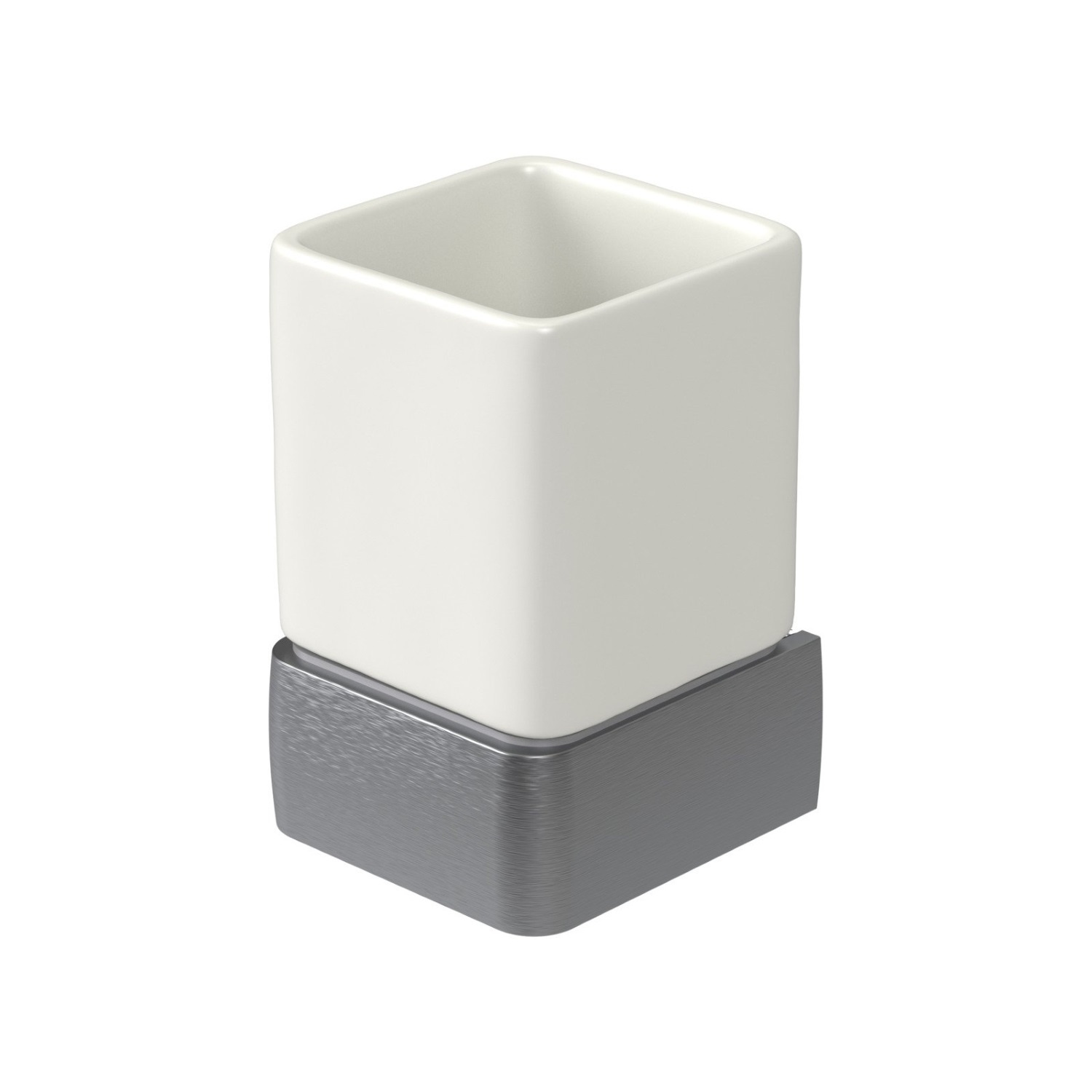 Deze bekerhouder van het populaire badkamermerk Haceka behoort tot de serie 'Aline Grey'. De houder is gemaakt van aluminium en is afgewerkt in de kleur mat grijs. De vierkante, witte beker zelf sluit naadloos aan op deze houder en is gemaakt van keramiek. Het artikel heeft een breedte van 7,4 cm en een hoogte van 11,4 cm.