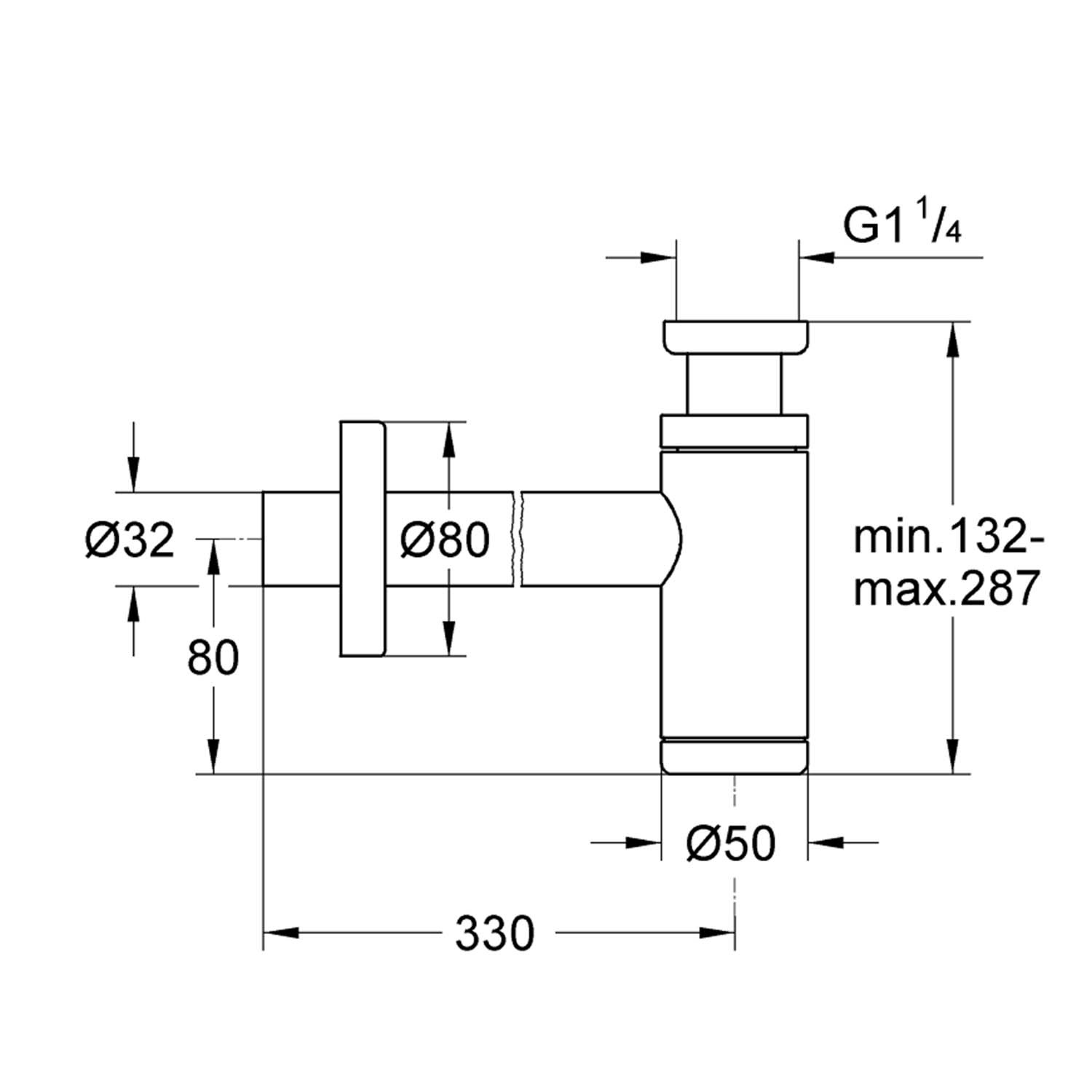 De bekersifon is verstelbaar in hoogte. In de kortste maat is de sifon 13.2 cm en in de langste maat is de sifon 28.7 cm. Zo past hij in iedere badkamer en ruimte.