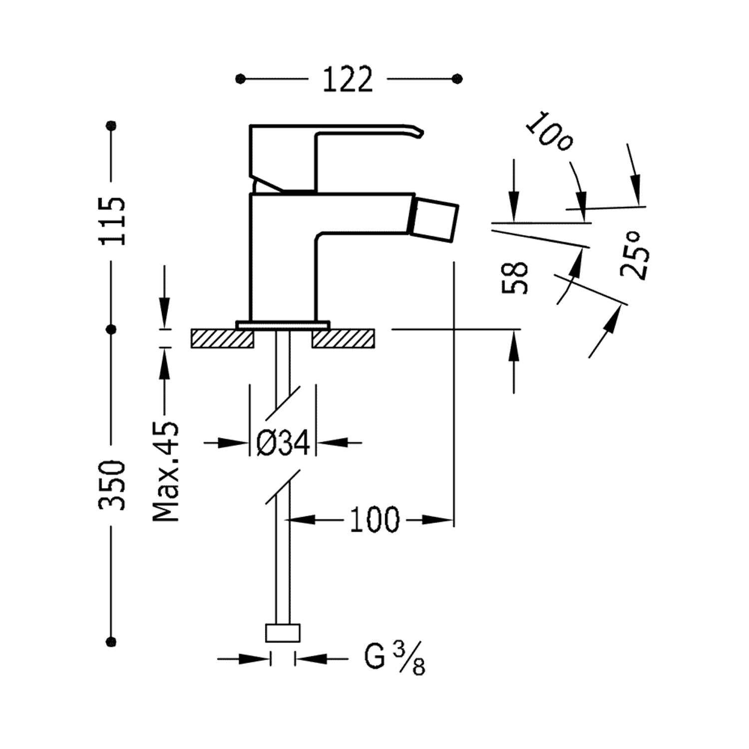 Deze bidetmengkraan van de serie 'Cuadro Exclusive' van Tres is een hygiënische en stijlvolle keuze voor uw badkamer of toiletruimte. De kraan heeft een hoogte van 11,5 cm. De uitloop heeft een lengte van 10 cm en de uitloop is 5,8 cm hoog. U bevestigt de kraan op een bidet. De kraan heeft een aansluiting van 3/8".