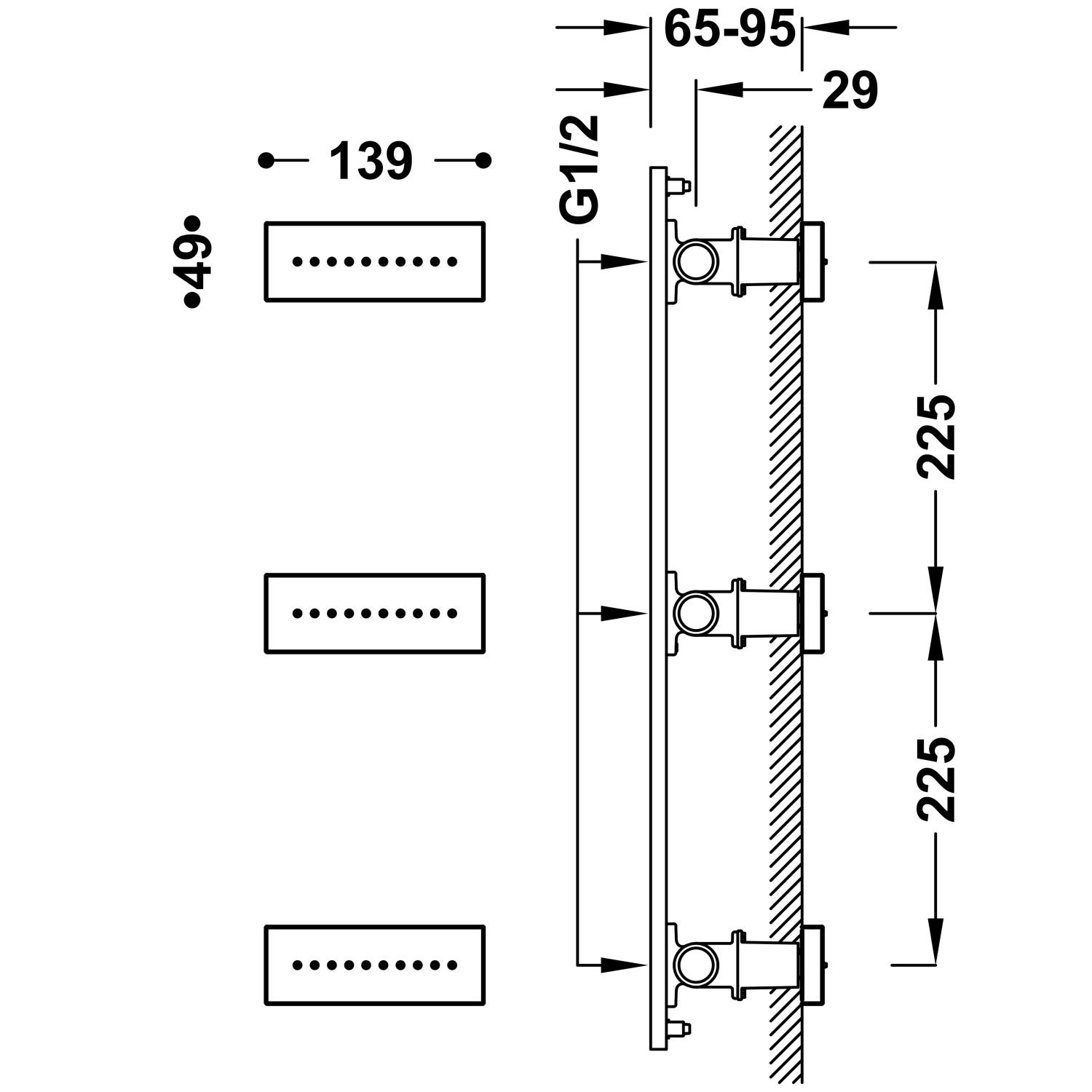 Deze body jets maken gebruik van 1/2" aansluitingen voor het water. Om kleurverschil te voorkomen, adviseren wij de combinatie met Tres producten