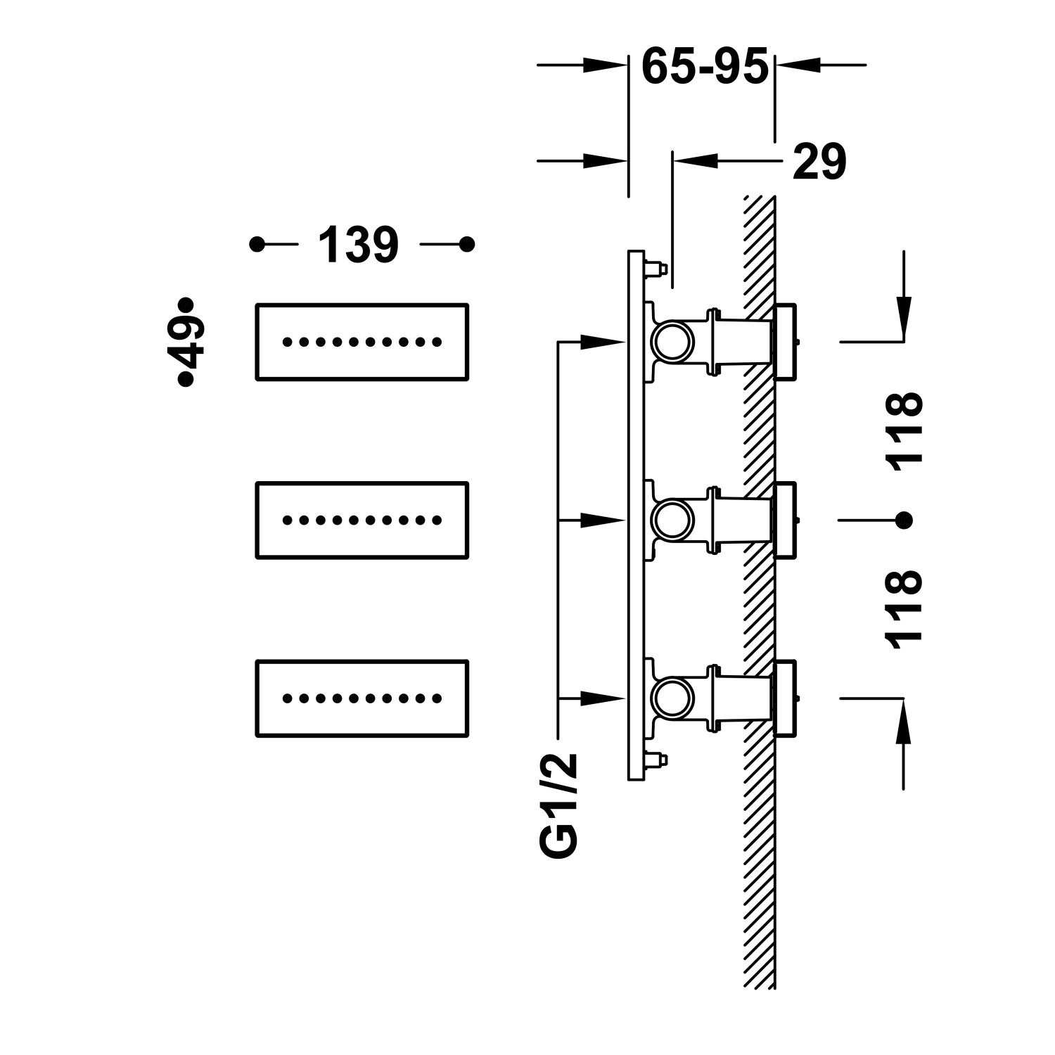 Deze body jets maken gebruik van 1/2" aansluitingen voor het water. Om kleurverschil te voorkomen, adviseren wij de combinatie met Tres producten