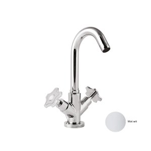 Wastafelkraan Sanimex Giulini Opbouw Tweegreeps Draaibare Uitloop Met Pop-Up Mat Wit