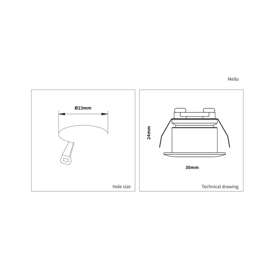 De inbouwspotlamp van uit de Mello serie is een rond LED spotlampje met een zwarte of witte uitvoering. De Mello inbouwspot heeft 35.000 branduren en heeft een warm licht temperatuur (2700K). Deze spotlampje is geschikt voor in elk soort woon-, werk- en leefruimte.