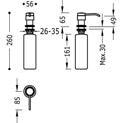 Complementos Metalen zeeppompje Voor inbouw in aanrechten. Inhoud 0,4 liter