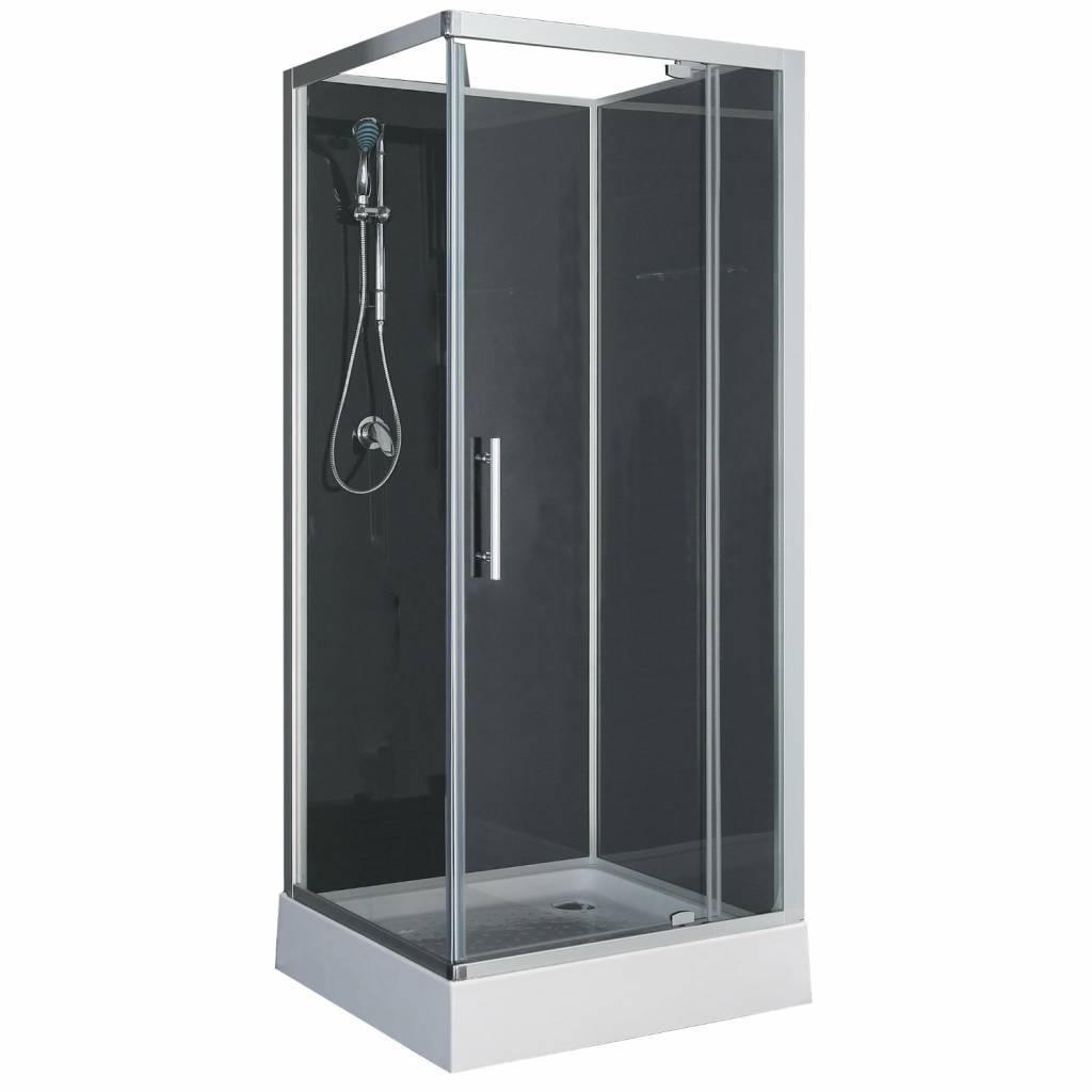 Verder is de cabine uitgerust met een eengreeps mengkraan met omschakelaar. De regelbare stang kan aangepast worden op de gewenste hoogte. De handdouche is makkelijk in gebruik.
