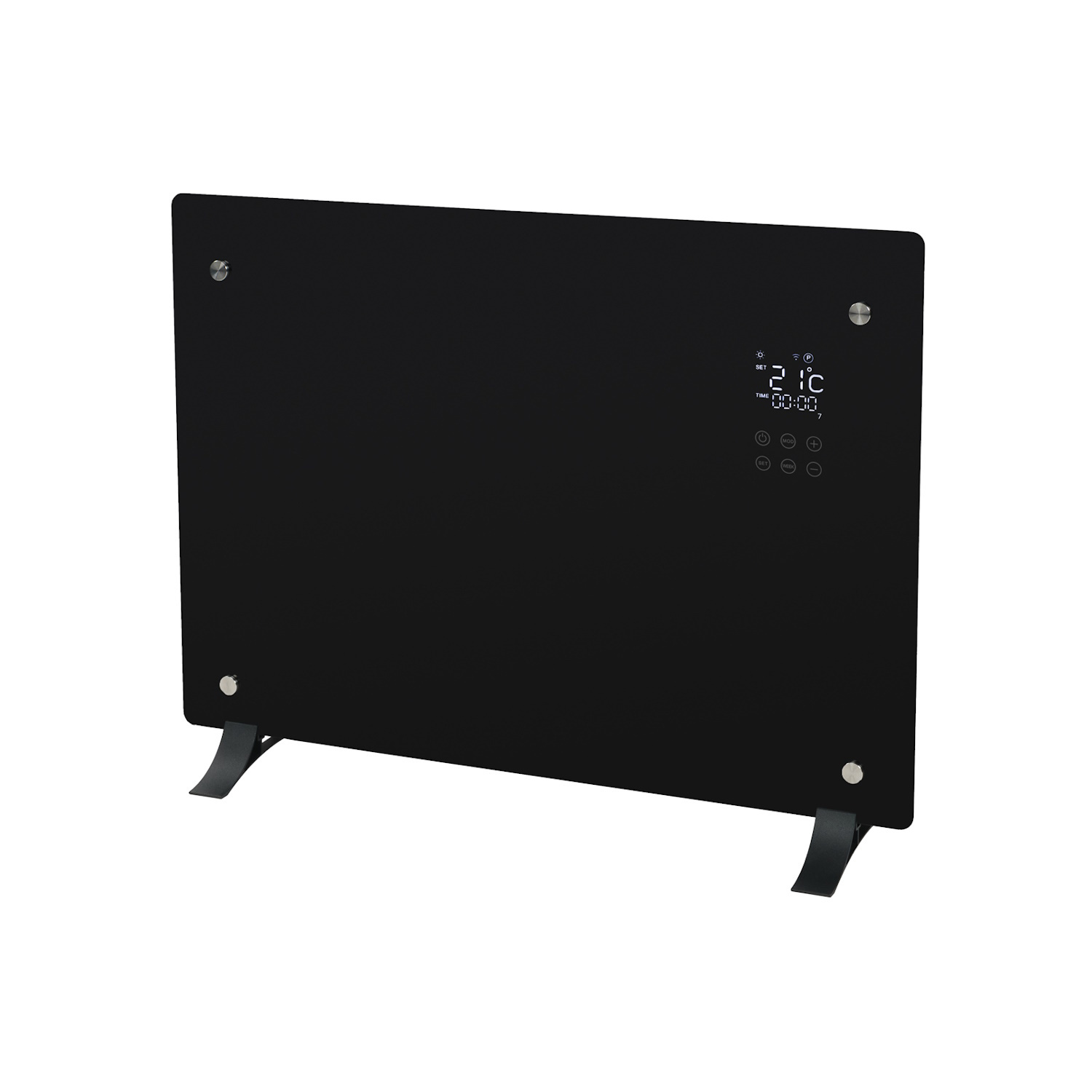 De afmetingen van deze verwarming zijn 44 cm lang, 62cm breed en 14 cm diep. Hij heeft een vermogen van 1000Watt en een aansluitspanning van 220-240/50 V/Hz. De verwarming is op 3 verschillende manieren te bedienen, door middel van een afstandsbediening, een display en een app. Ook is de verwarming voorzien van omvalbeveiliging.