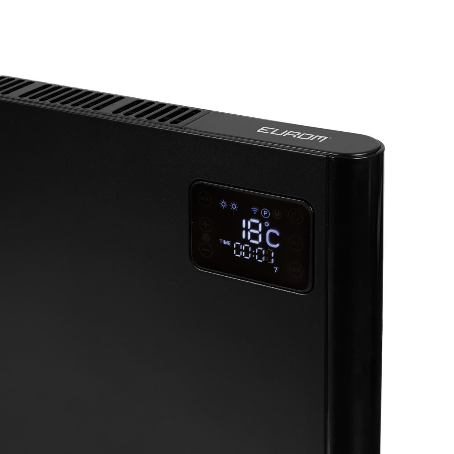 De afmetingen van deze verwarming zijn 92 cm lang, 45.8cm breed en 9 cm diep. Hij heeft een vermogen van 2000Watt en een aansluitspanning van 230/50 V/Hz. De verwarming is op 3 verschillende manieren te bedienen, door middel van een afstandsbediening, een display en een app. Ook is de verwarming voorzien van omvalbeveiliging en kan hij ingesteld worden in 3 wattages; 800, 1200 en 2000 Watt.<