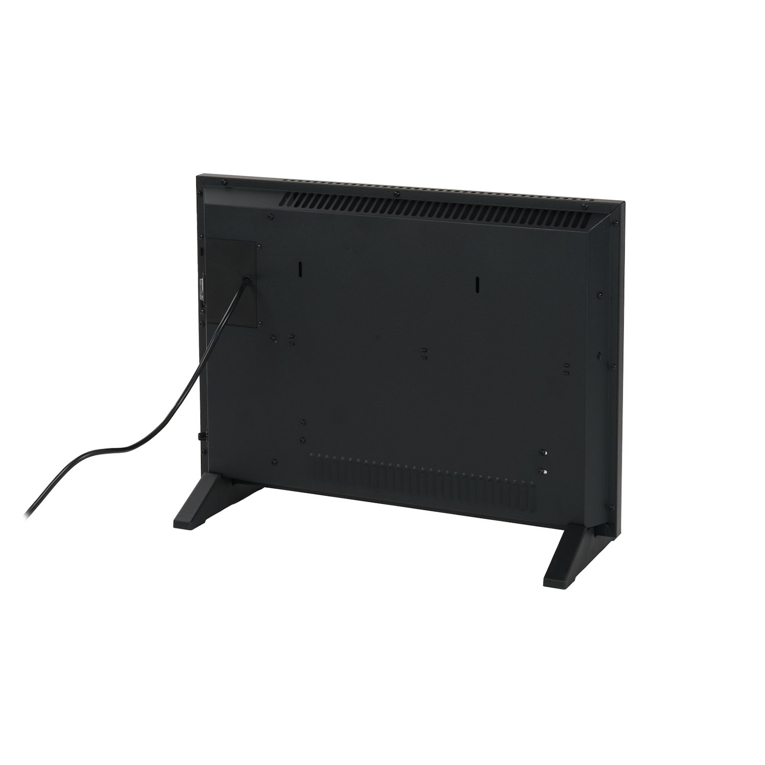 De afmetingen van deze verwarming zijn 42.9 cm lang, 56cm breed en 8.5 cm diep. Hij heeft een vermogen van 800Watt en een aansluitspanning van 220-256/50 V/Hz. De verwarming is op 3 verschillende manieren te bedienen, door middel van een afstandsbediening, een display en een app. Ook is de verwarming voorzien van omvalbeveiliging.