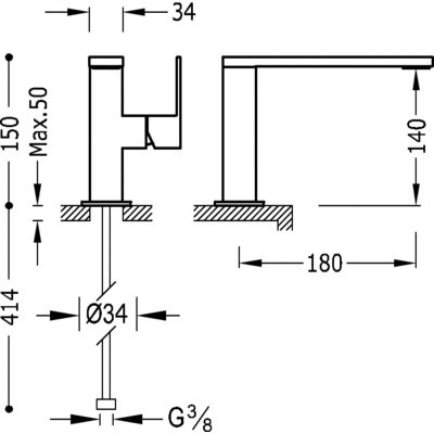 Cuadro Wastafelmengkraan uitloop 34x10 mm.