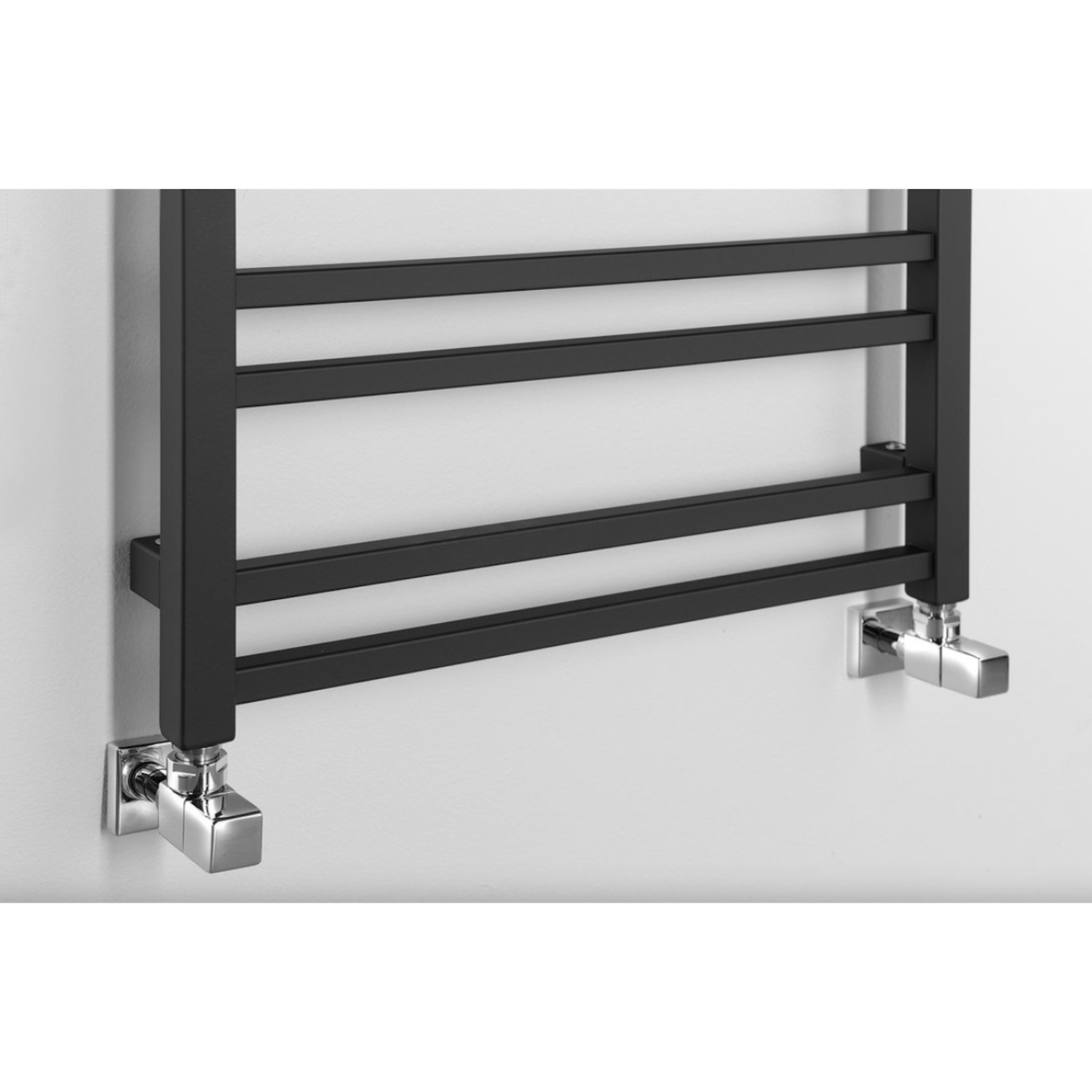 Designradiator Sapho MMet deze mat zwarte designradiator van Sapho uit de serie Metro Dos, heeft u een topper van een radiator in huis. Met een temperatuur gradient van 75/60/30 graden en 2 jaar fabrieksgarantie, stelt deze H-vorminge radiator nooit teleur. Deze radiator valt op verschiilede manieren te verwarmen, namelijk: centraal ,electrisch en gecombineerd. Het materiaal is van staal en de kleur is mat chroom. Metro Dos 55x143 cm Mat Zwart.