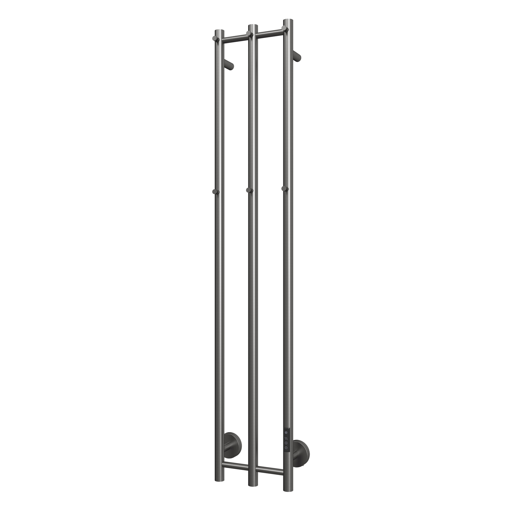 Deze radiator is van het merk TVS Design uit de serie Plus EL. Door de gunmetal kleur en design geeft deze radiator een luxe uitstraling aan de badkamer. De radiator heeft 3 verticale buizen van Ø32 mm en 2 horizontale buizen van Ø19 mm. Er zitten 6 haken aan de radiator om de handdoeken aan op te hangen. Aan de achterkant zitten 4 bevestigingspunten, waardoor hij makkelijk aan de muur te bevestigen is. De radiator heeft een capaciteit van 145 Watt en een build in timer van 2 en 4 uur.